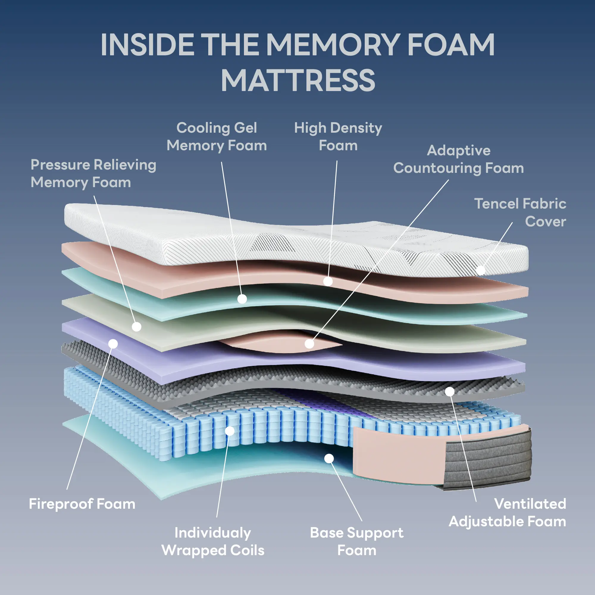 ·【Cooling Gel Memory Foam Mattress】Infused with cooling gel beads, the memory foam layer actively draws heat away from your body, regulates moisture, and prevents night sweats. Enjoy a consistently cool and comfortable sleep all year round.
