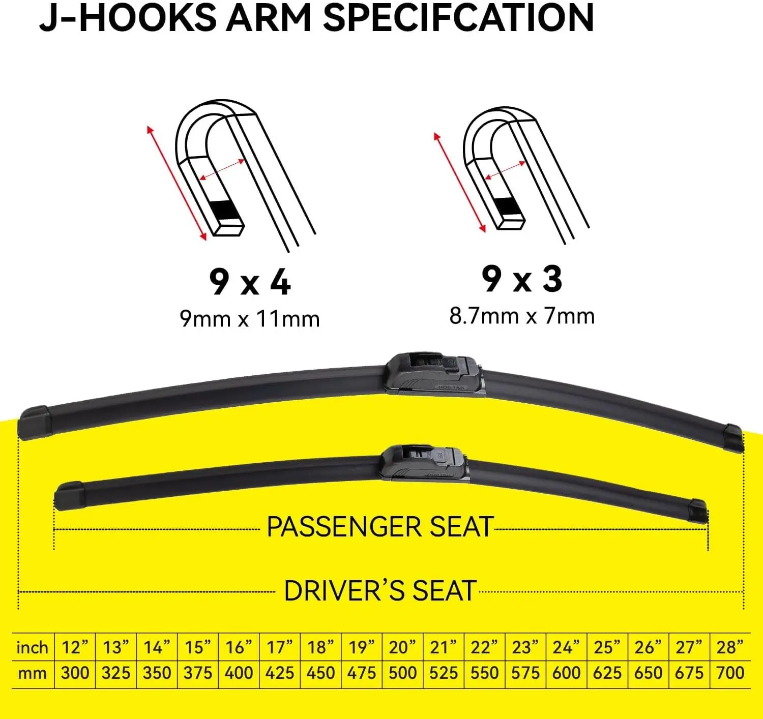 Upgrade your vehicle’s windshield wipers effortlessly with these DOGTAIL J-Hook blades designed for easy, tool-free installation. Simply secure the hook to swiftly replace your old blades and improve your driving visibility.