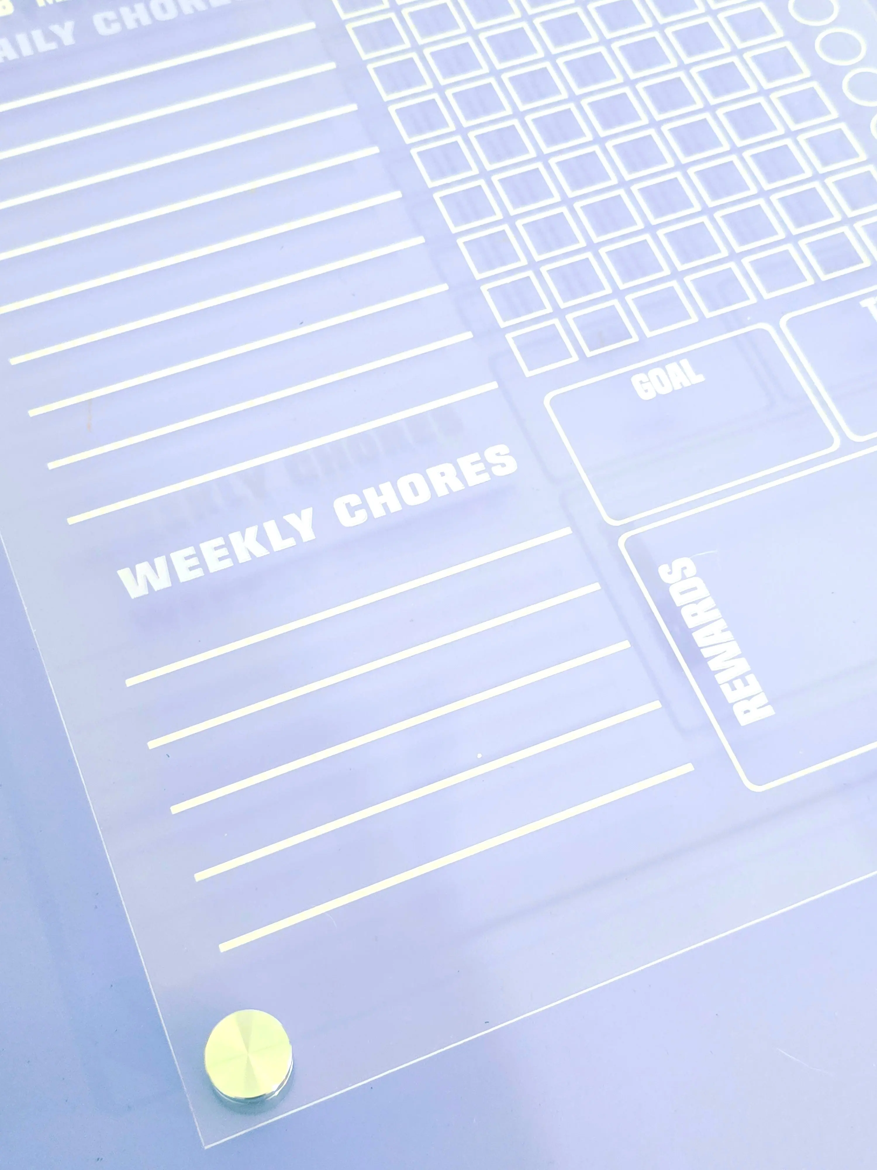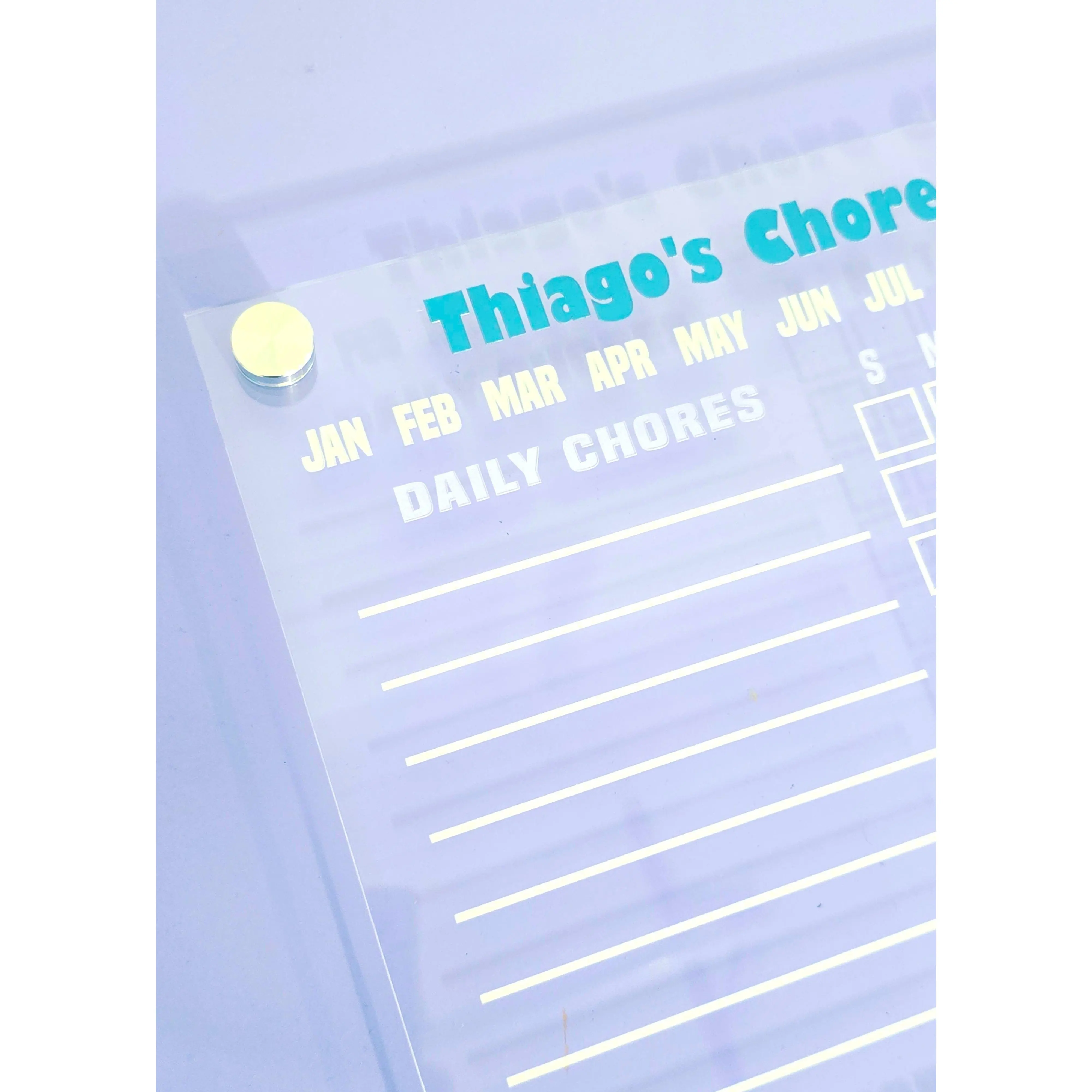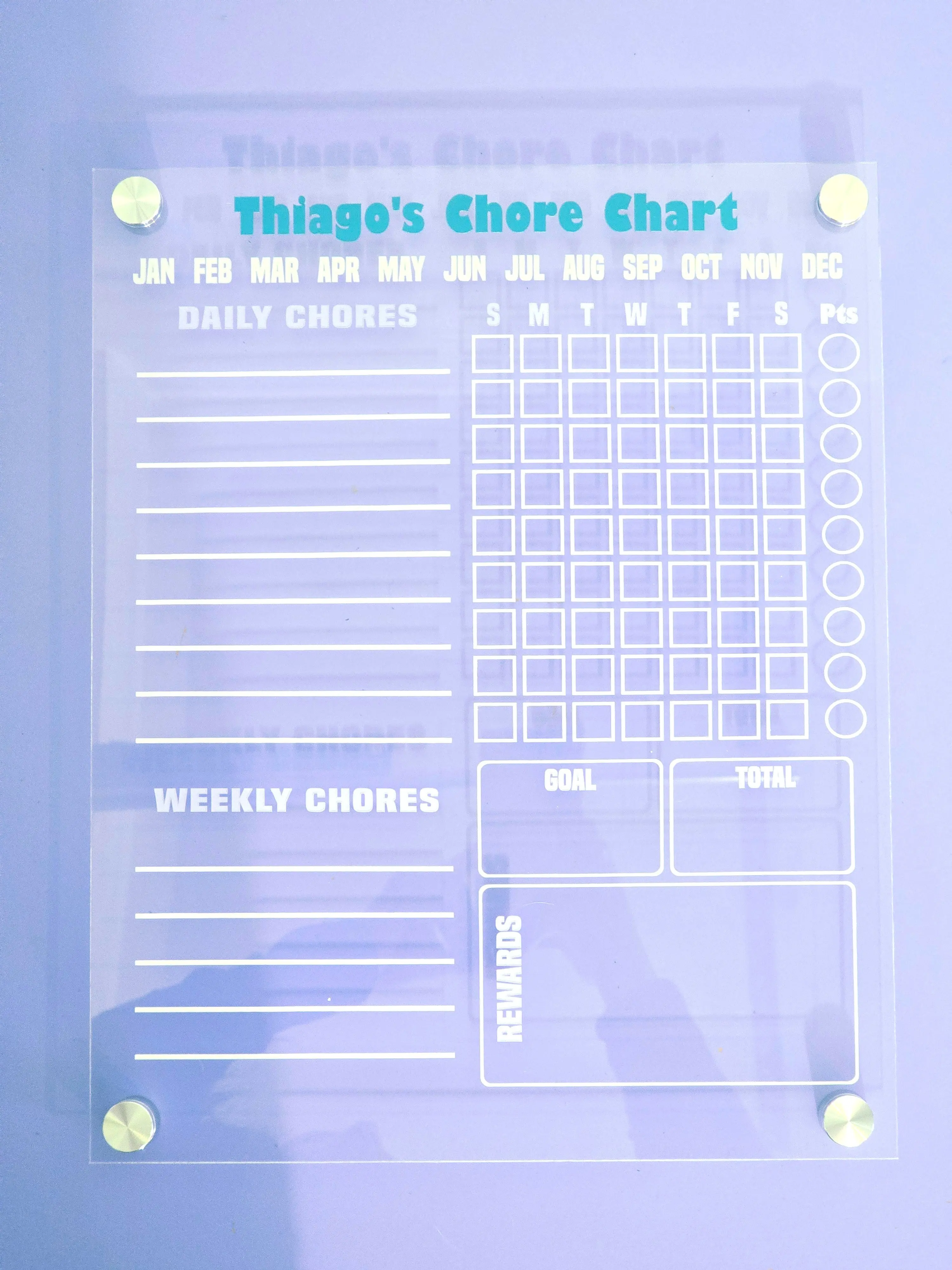Laser-engraved chore chart for kids ages 3-12. Visual habit system that teaches responsibility and independence. Personalized with your kid's name.