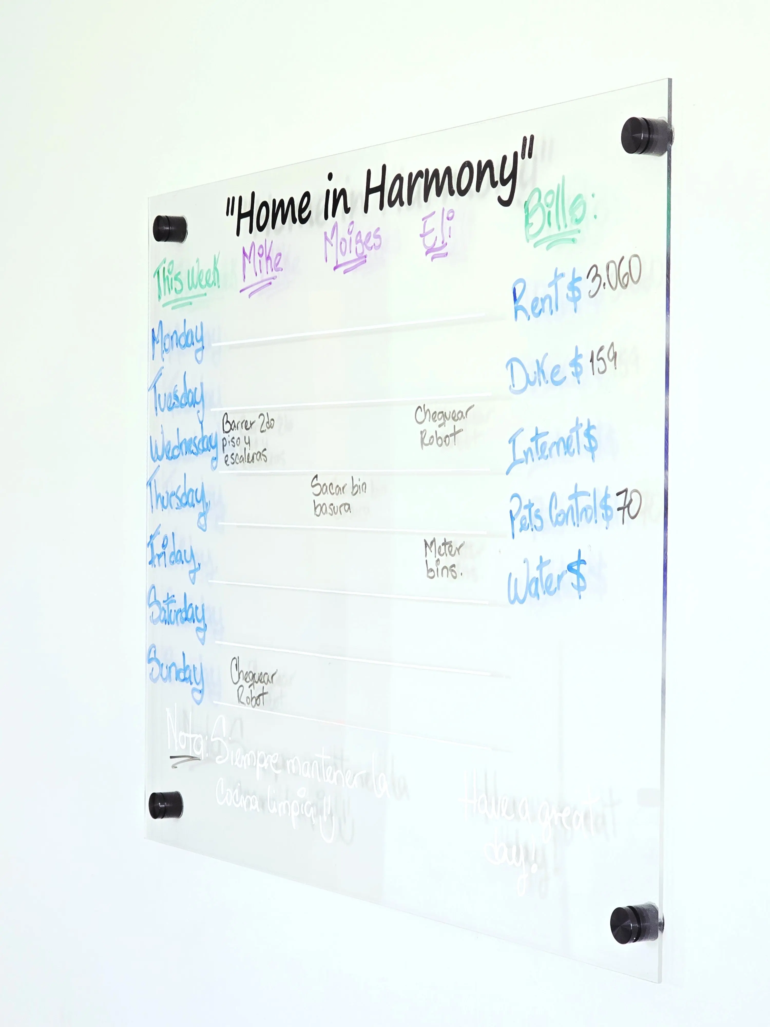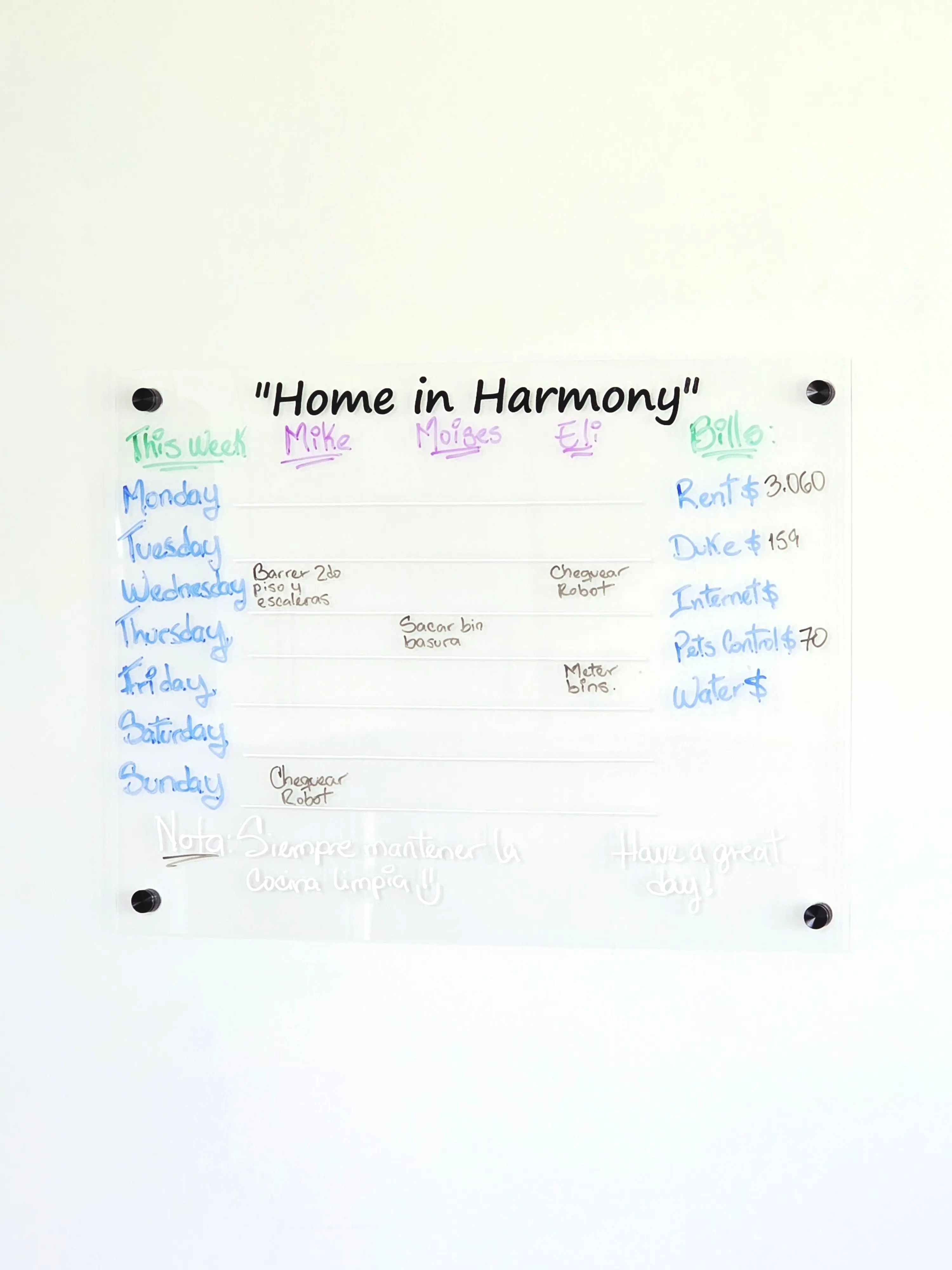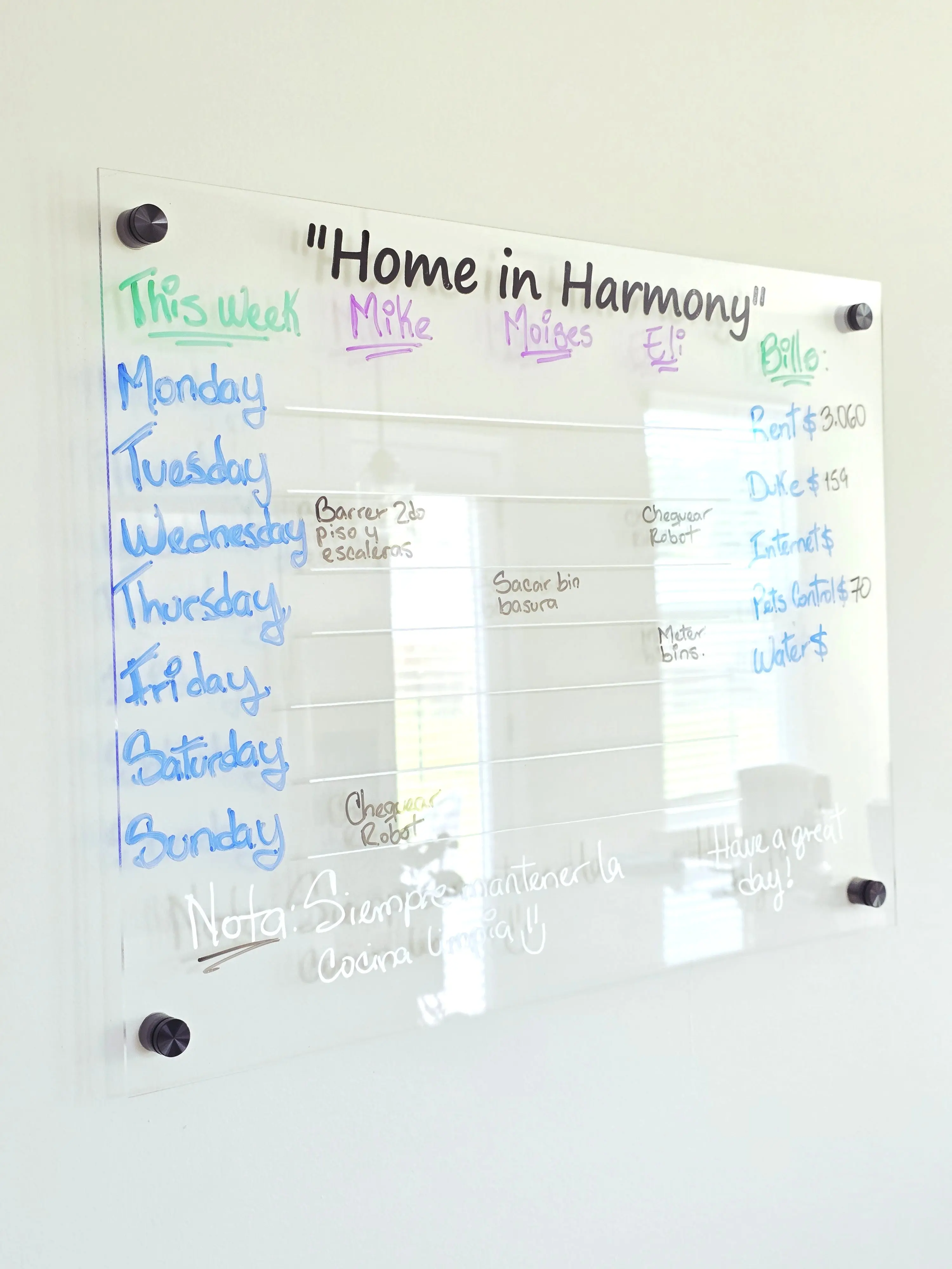 Made from premium acrylic with a sleek, modern look, it’s designed to be both functional and beautiful. Whether you mount it on the wall or use it on the fridge, it’s the perfect blank canvas for your organization style.