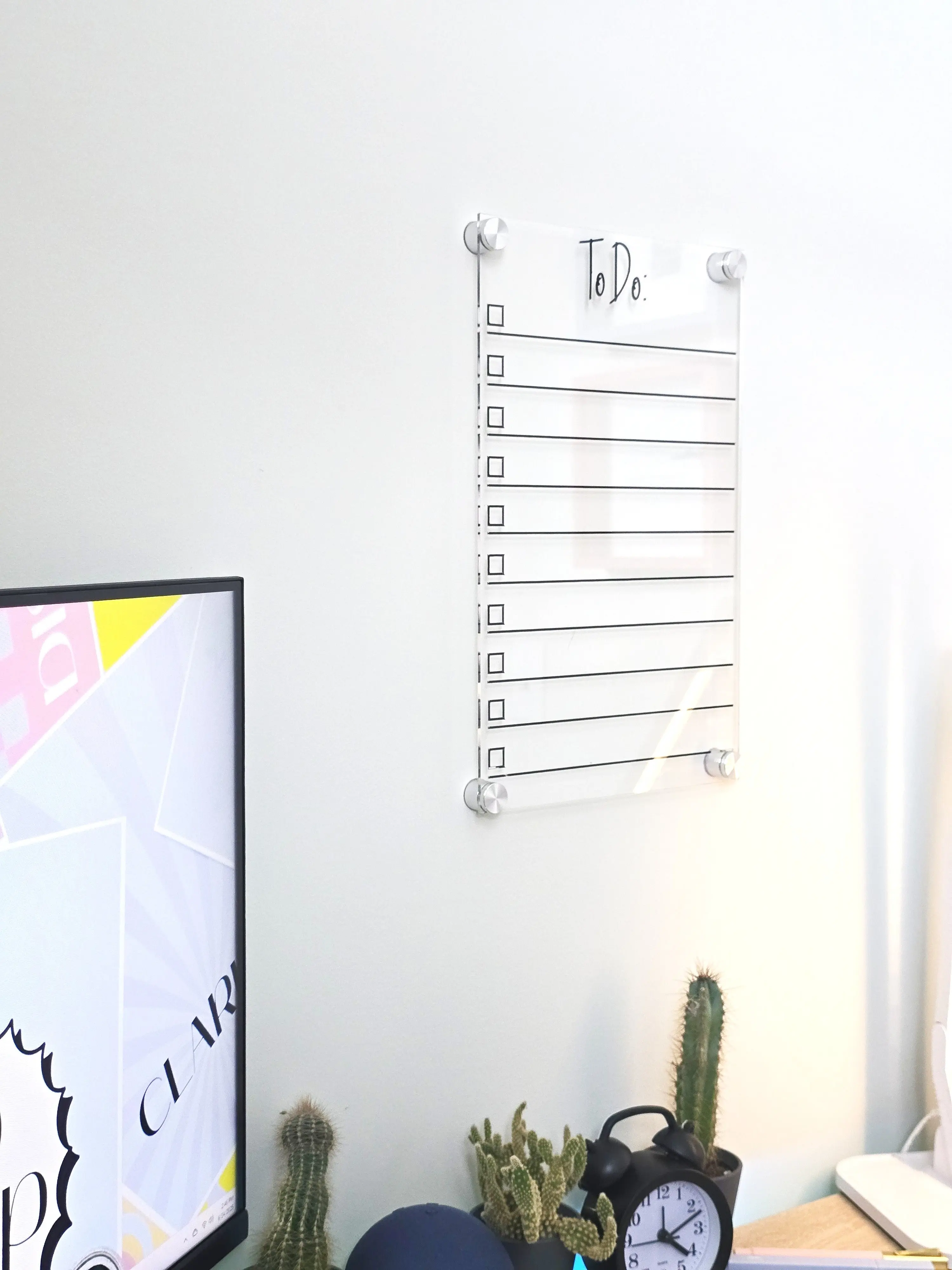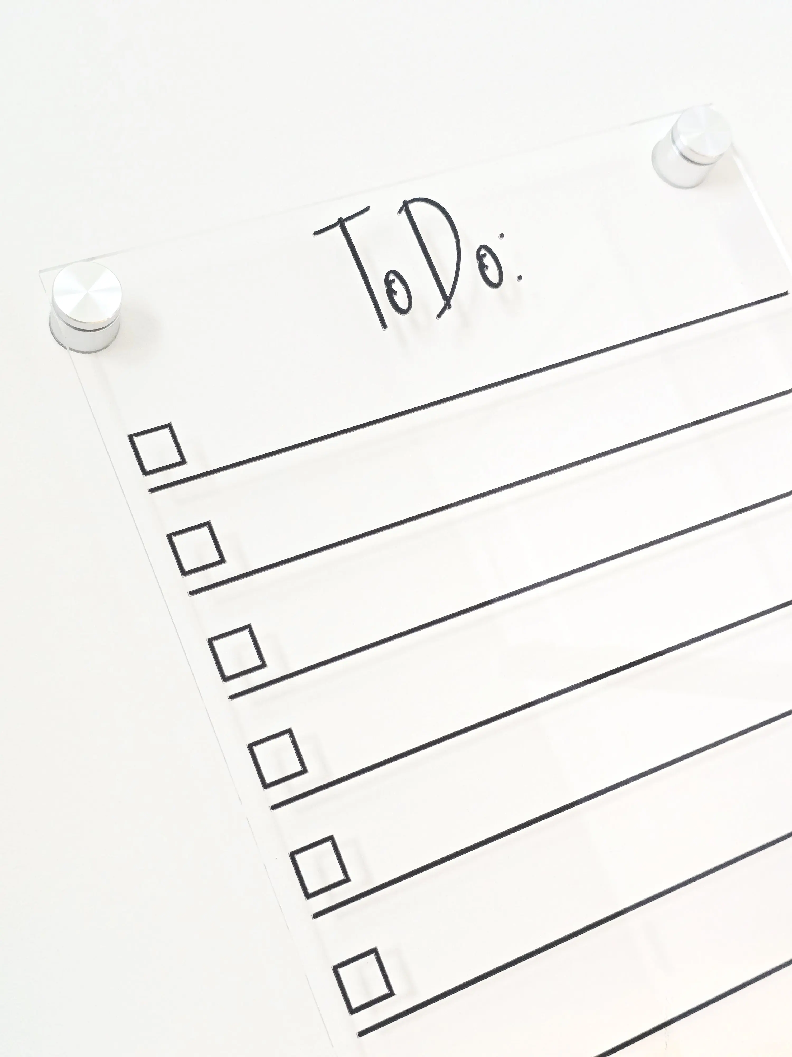 Stay on top of your priorities with our Acrylic To Do Planner Board, a simple yet powerful tool to keep your day organized and your mind clear. Designed for quick notes, lists, and reminders, this planner blends style with function so your space looks as good as it runs.