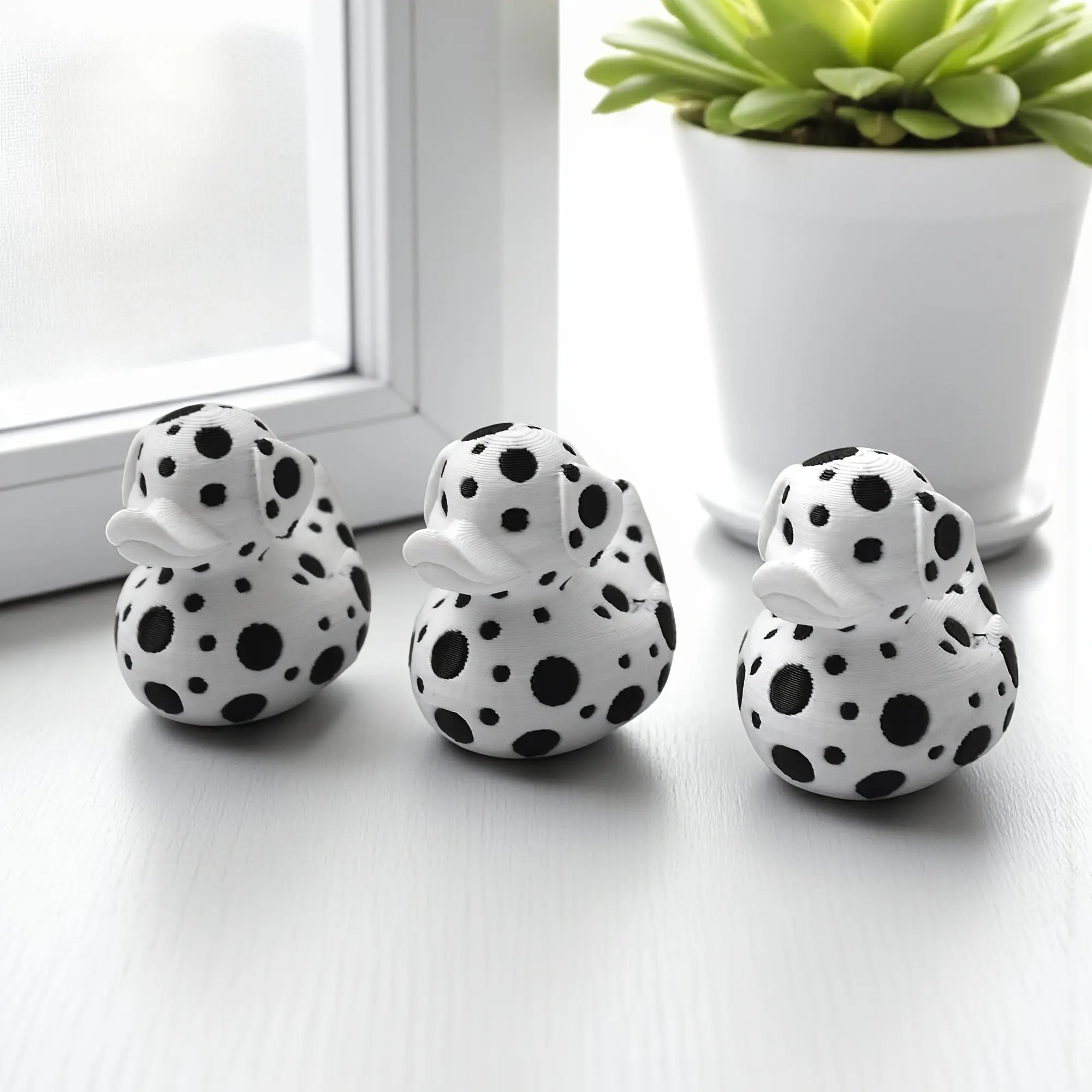 【Unique Design】: Features a cute spotted dog-style duck figurine, adding a playful touch to any space.