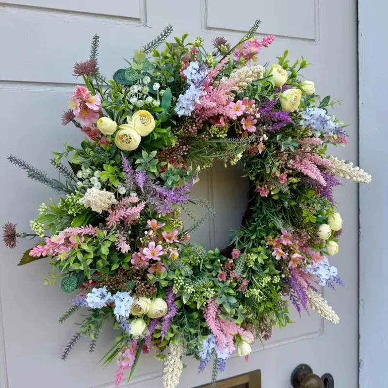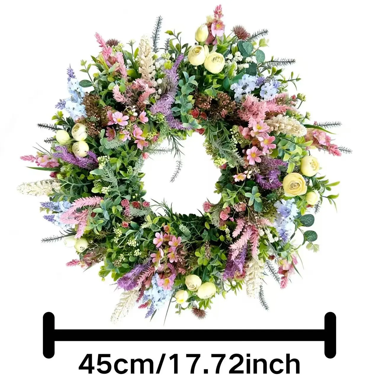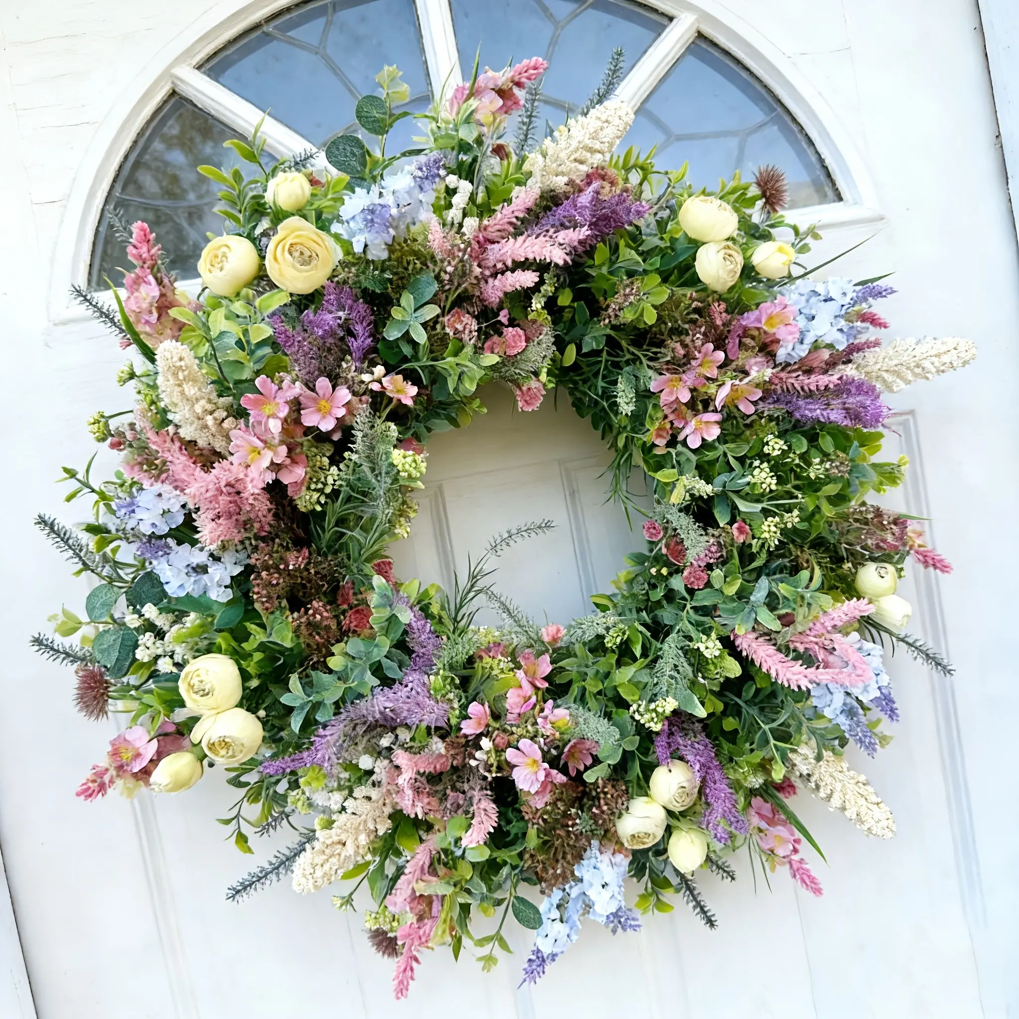 Wildflower Lavender Wreath, Farmhouse Summer Grass Door Decor, All-Season Mother's Day Gift, Spring Wreath, Year-Round Housewarming Present
