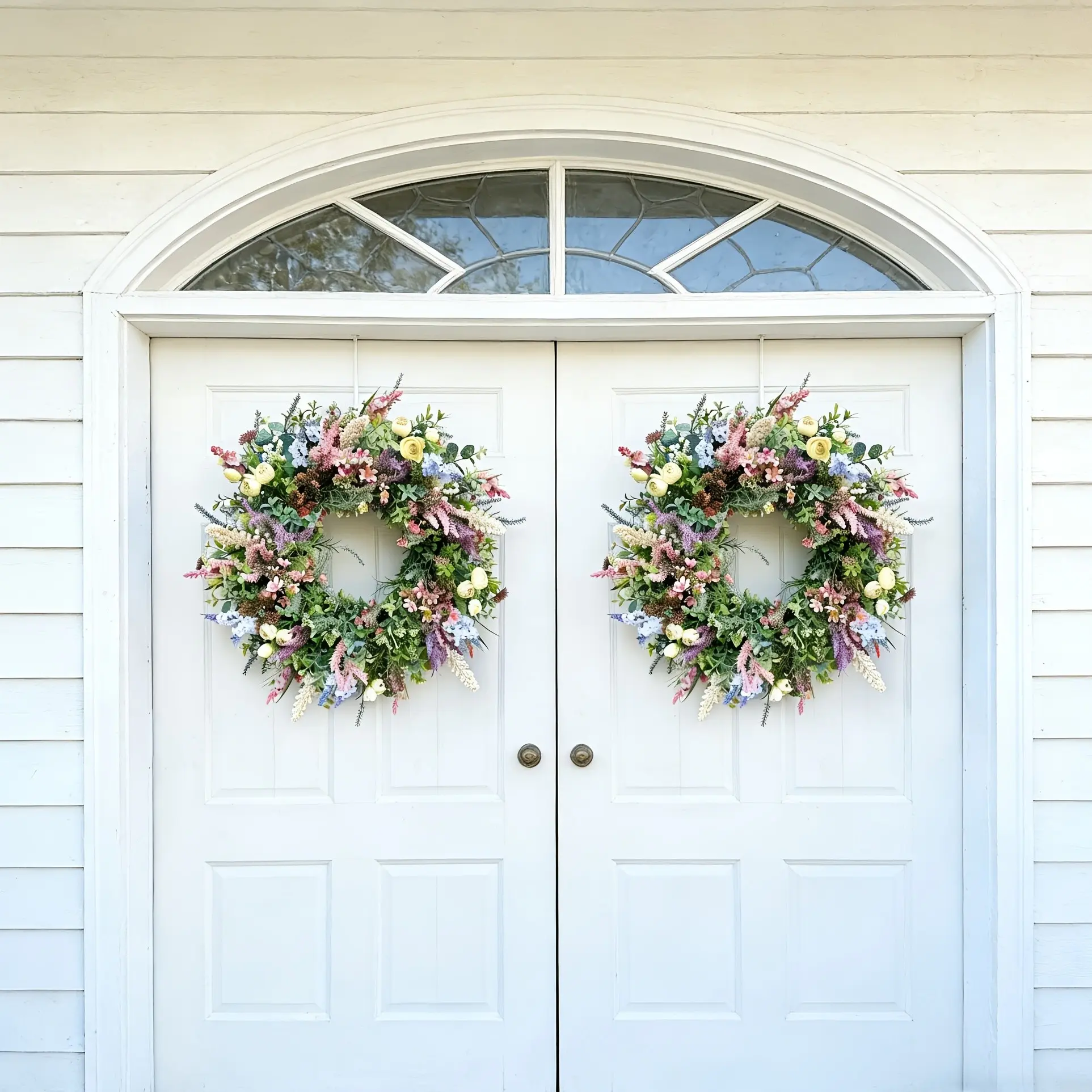 [Realistic Plastic Material]: Crafted with realistic plastic wildflowers, this wreath features an authentic and rustic appearance that complements various home decor styles.