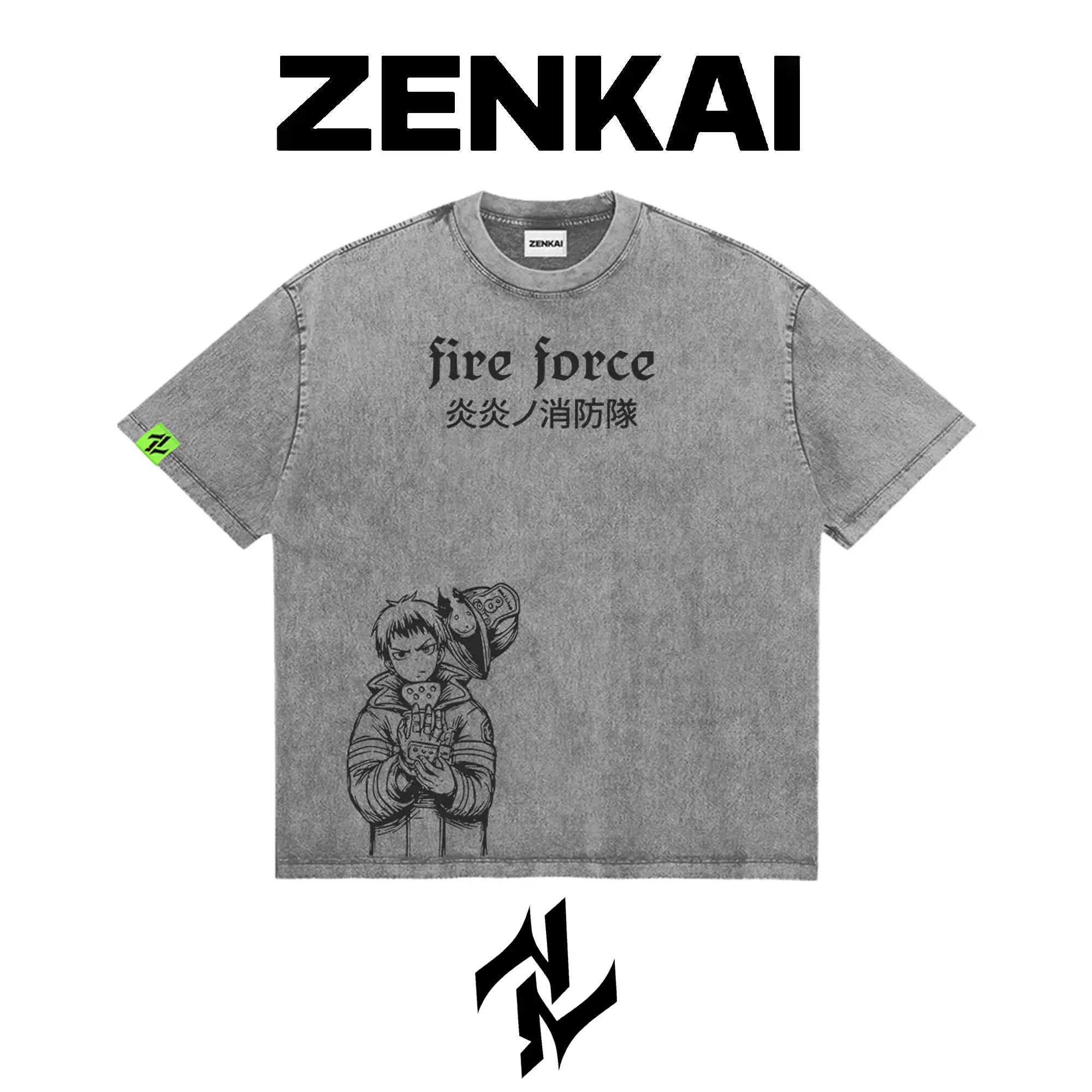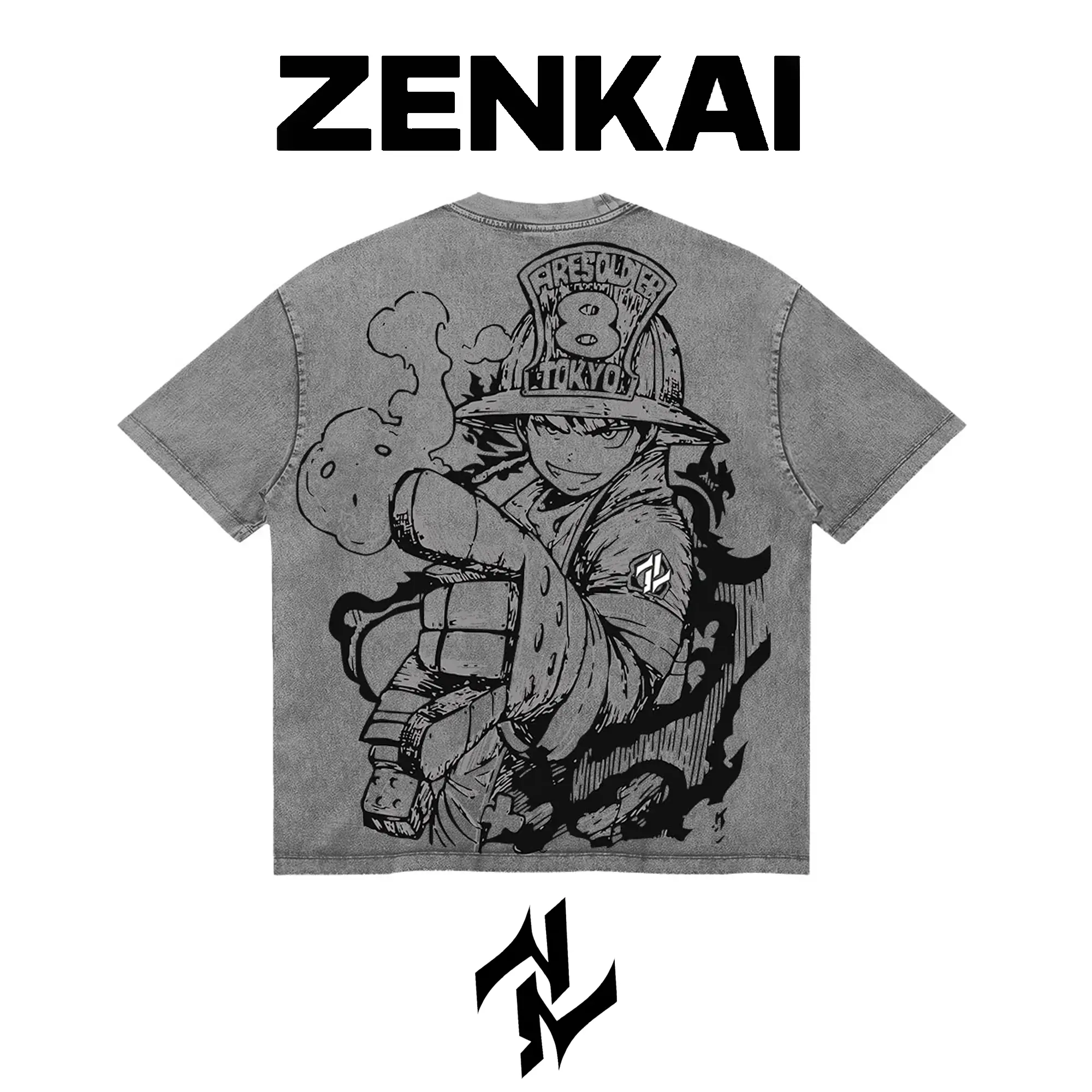 Shinra Kusakabe Devil’s Footprint: Shinra’s Vow - Fire Force (Enen no Shouboutai) Graphic Tee Double Sided Print Oversized Acid-Washed Heavyweight Cotton T-Shirt – Unisex Anime Manga Tee, Perfect Gift for Anime Fans and Lovers Menswear Tops