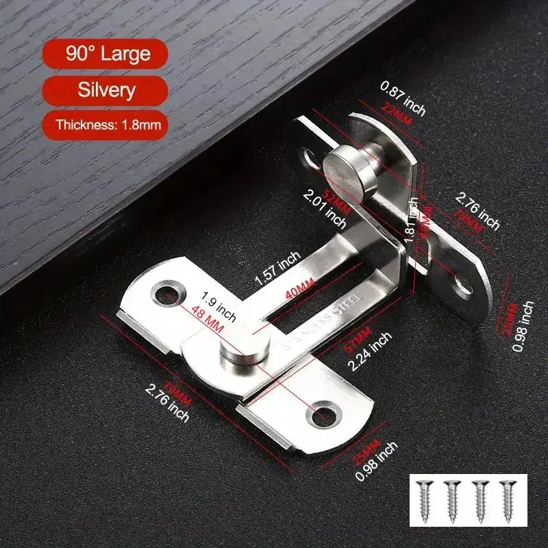 ·Versatile Door Latch: This stainless steel door latch bolt is perfect for various applications. It fits right angle buckles, gate slides, and sliding latches. Ideal for bathroom doors, screen doors, and cabinet doors. 🛠️