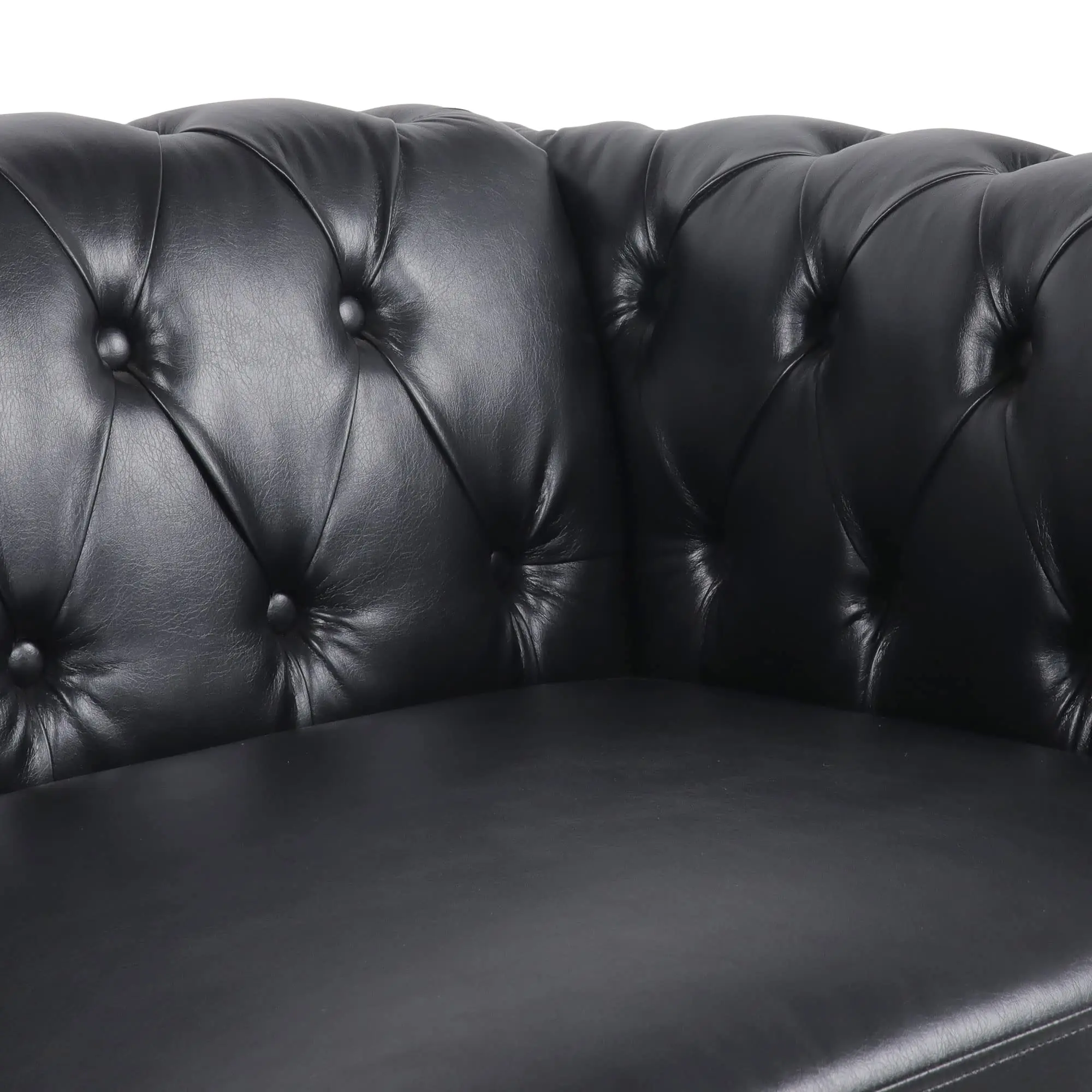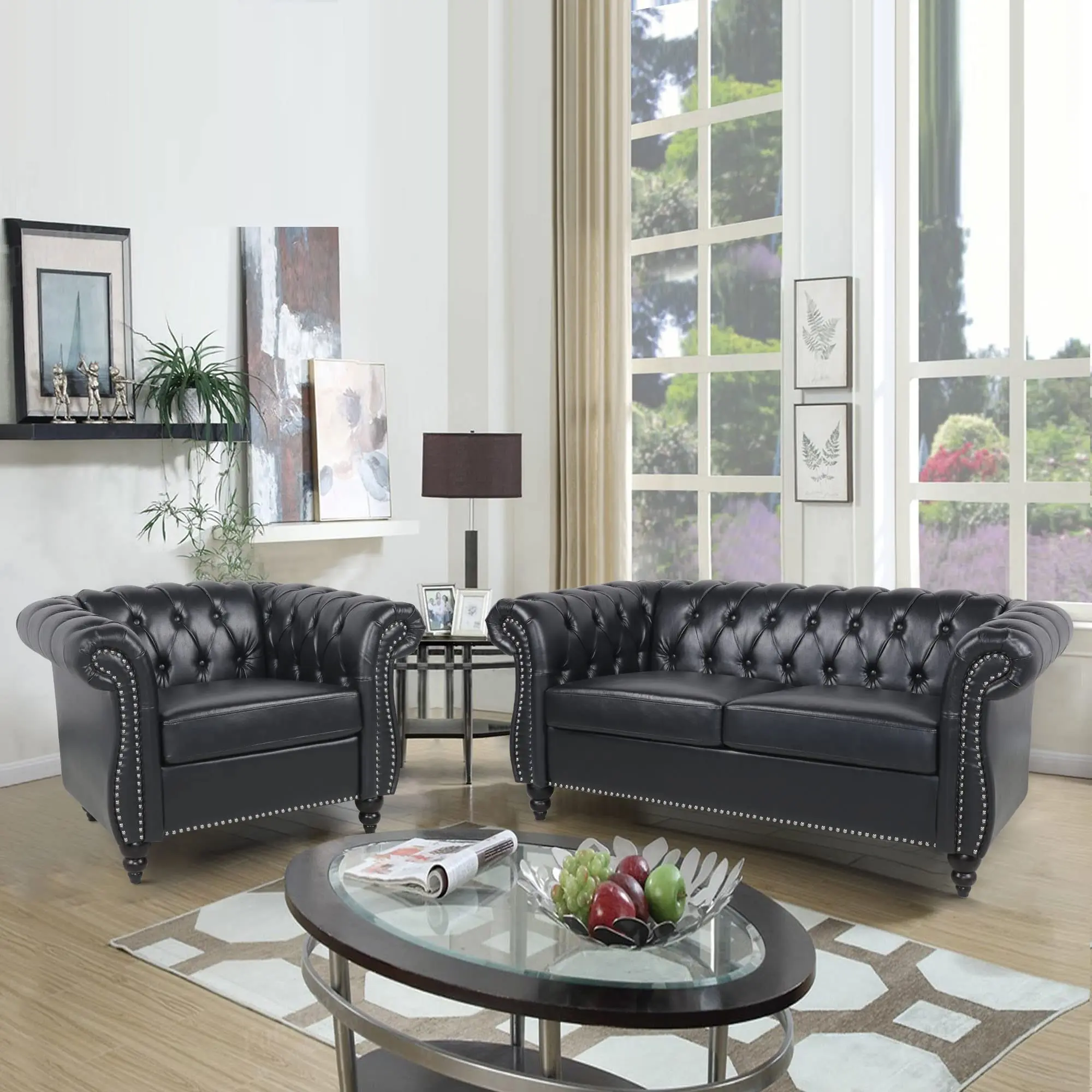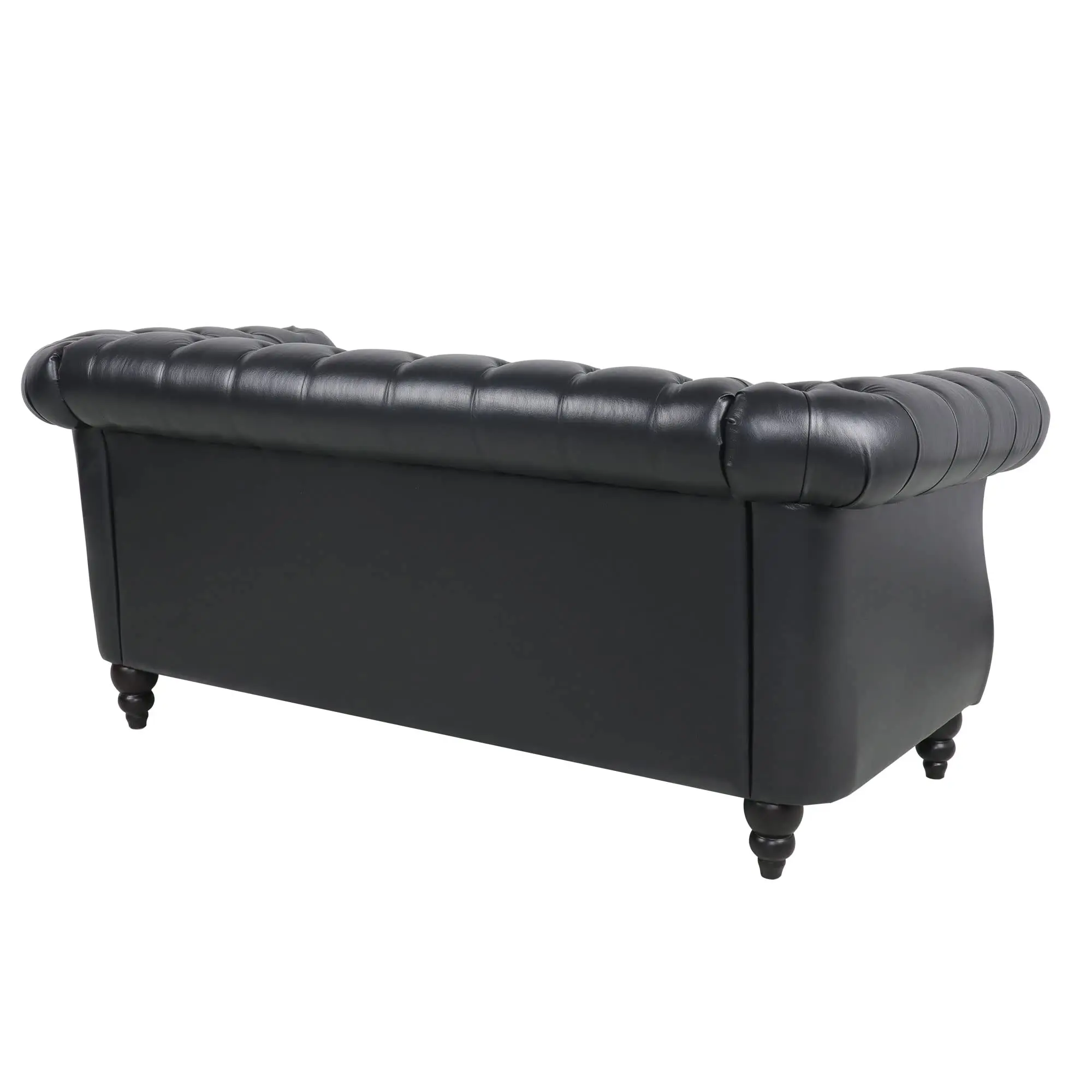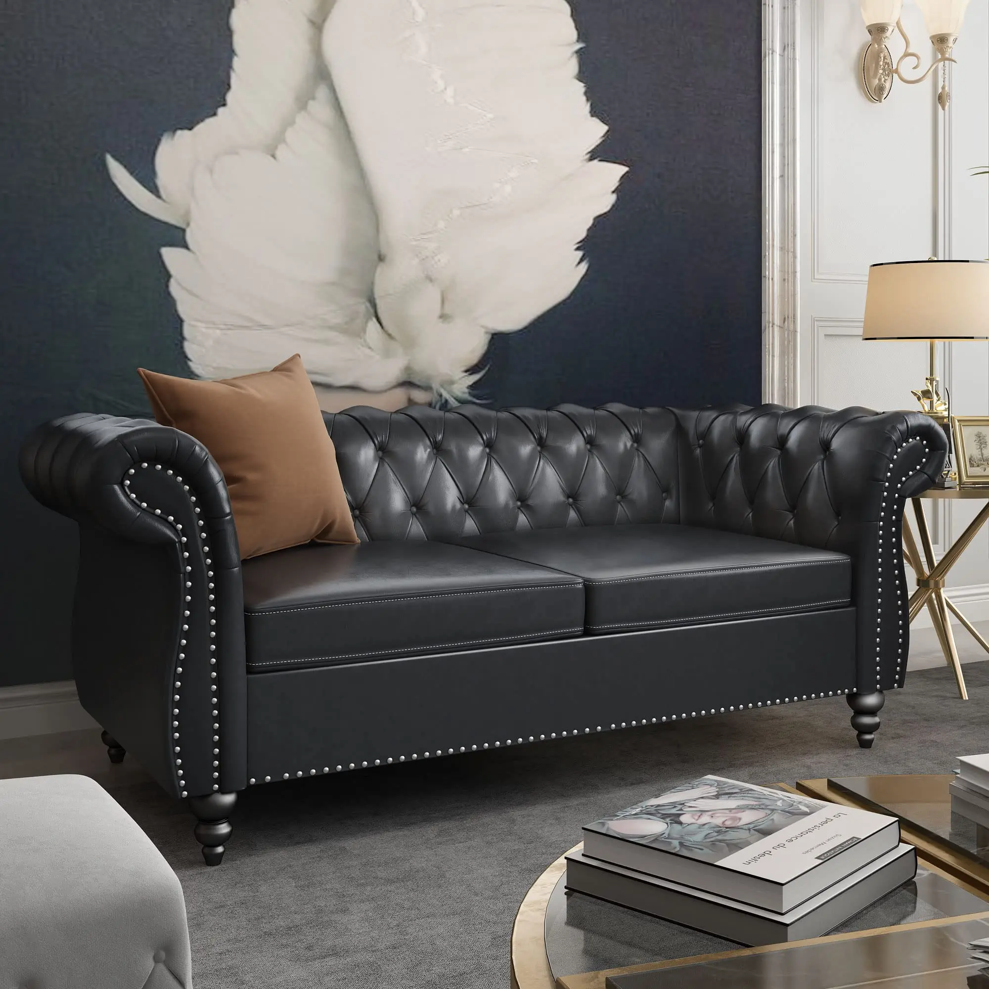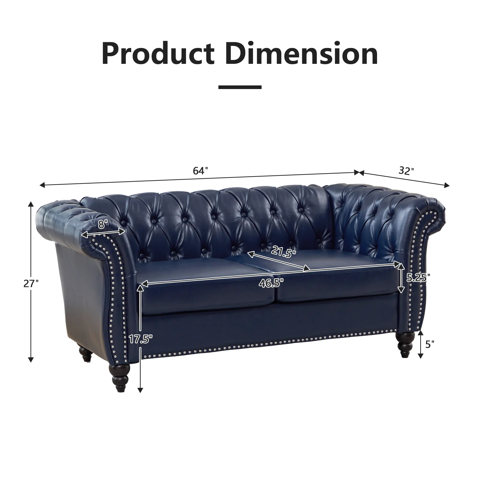 ·Timeless mid-century Chesterfield design — Embrace iconic style with this classic Chesterfield sofa. With deep button tufting, elegant rolled arms, and gleaming silver nailhead trim, it adds a touch of sophisticated mid-century modern elegance to any living room, office, or study.