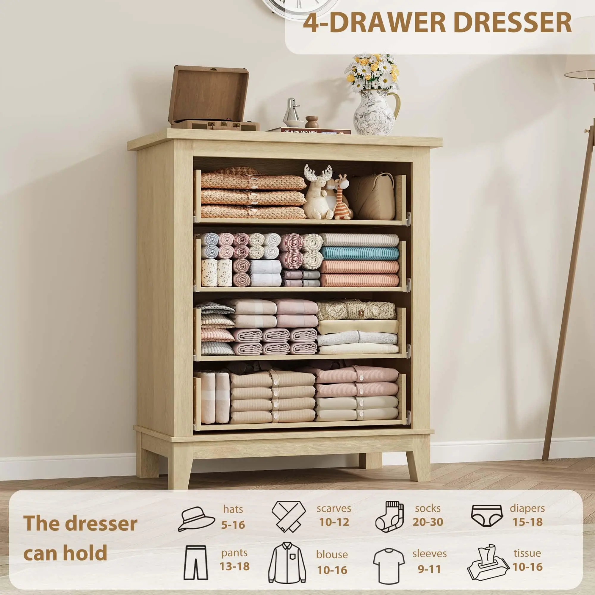 Upgrade Your Bedroom Storage with Our Wooden 4-Drawer Dresser!