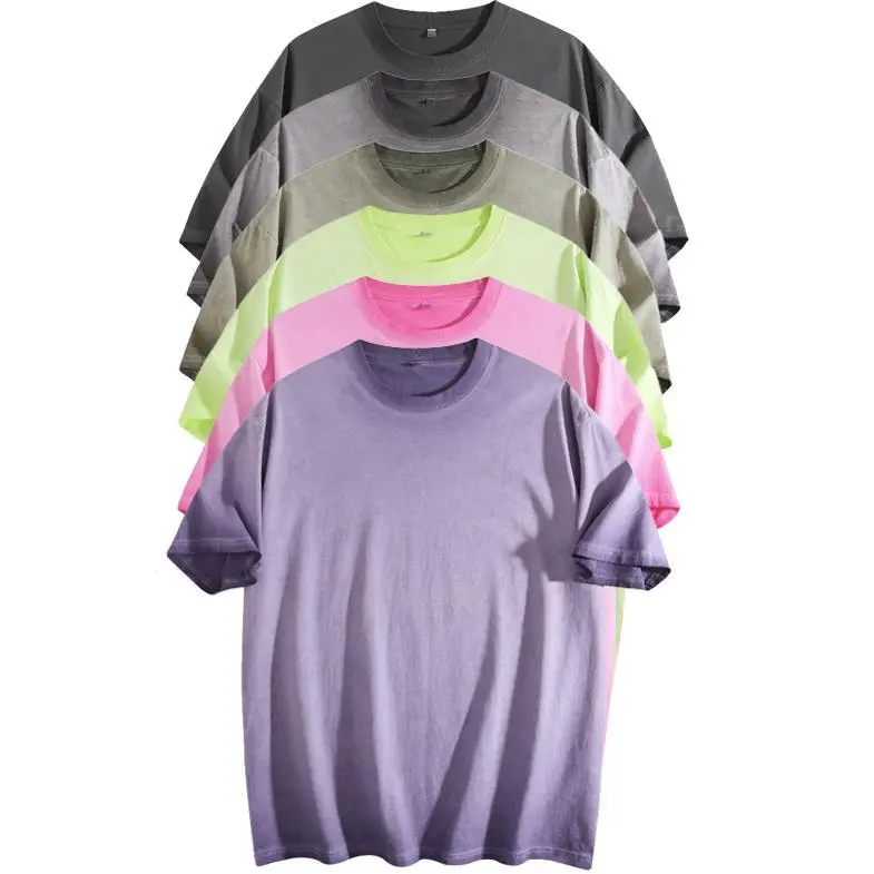 Six classic fluorescent and neutral acid-washed colors are available: Charcoal Black, Gray, Olive Green, Fluorescent Green, Rose Red, and Lavender Purple.