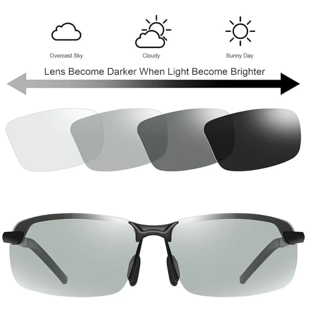 PHOTOCHROMIC TECHNOLOGY: Lenses automatically adjust tint based on UV exposure, transitioning seamlessly between day and night conditions for optimal visibility