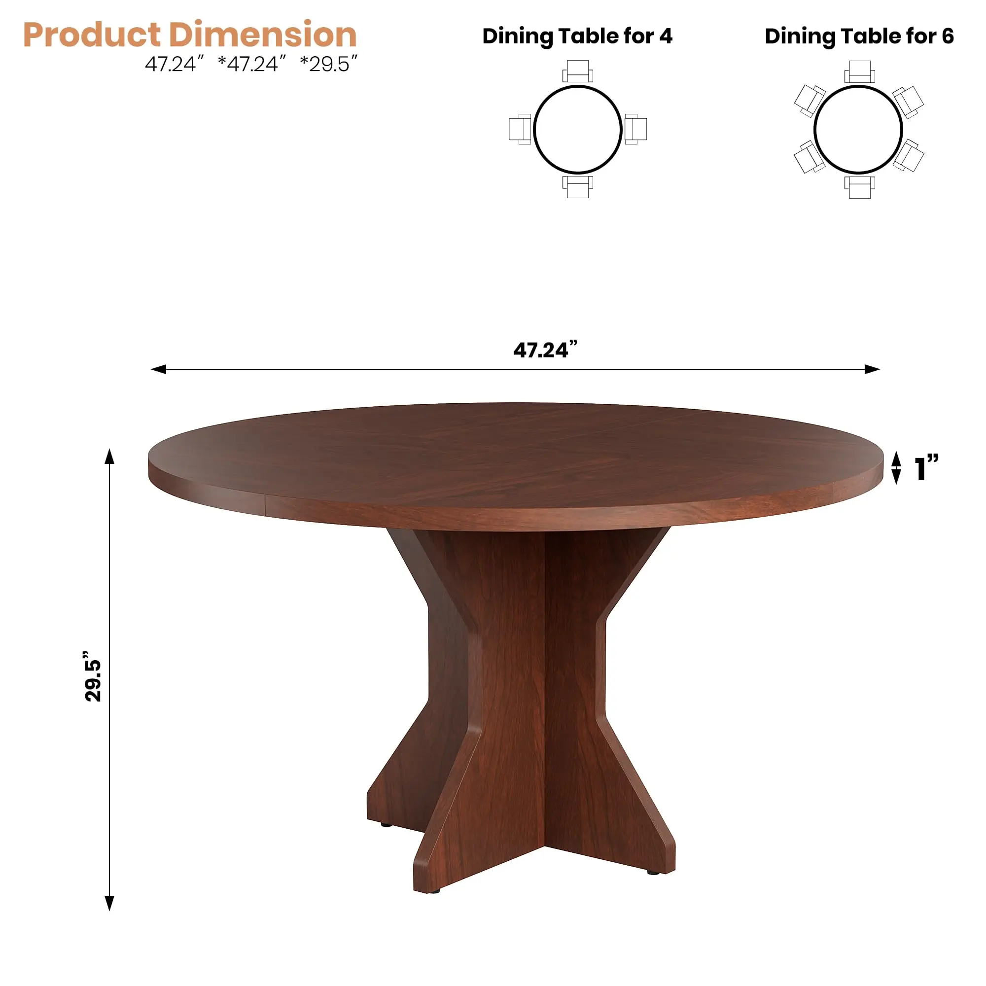 Gather family and friends around this stylish 47‑inch round dining table, designed to comfortably seat 4–6 people. Its spacious circular shape promotes conversation and connection during meals—perfect for cozy family dinners or lively gatherings.