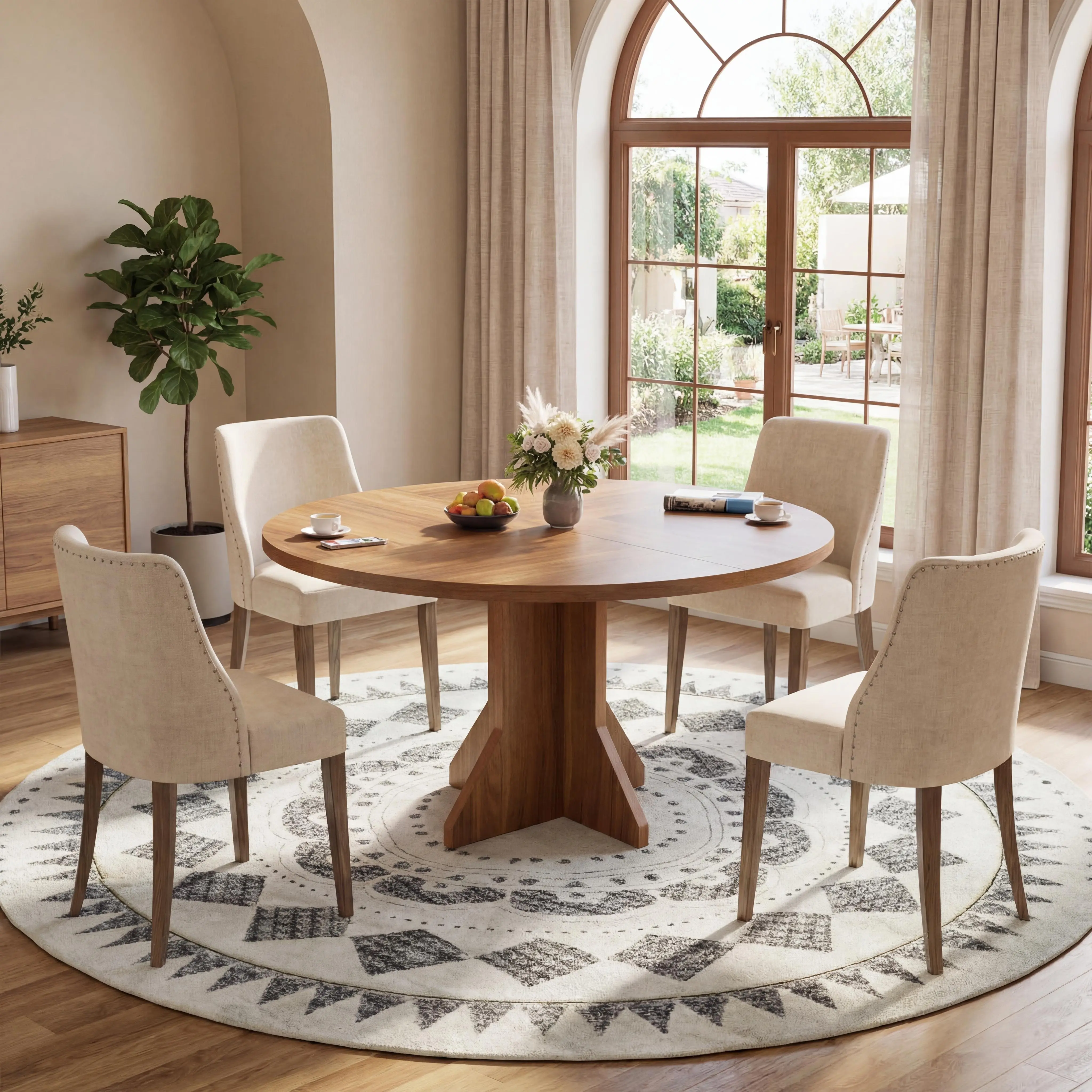 Featuring a clean, minimalist finish, this table adds a warm, contemporary touch to your dining space. It complements a variety of decor styles and creates a beautiful contrast with farmhouse or traditional interiors.