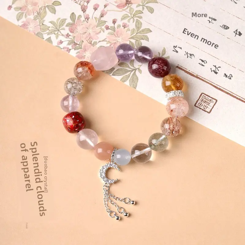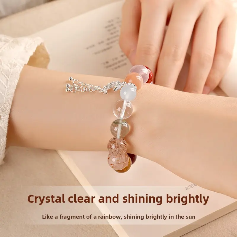 [Multi Treasure Crystal] crystal bracelet, black gold super seven green phantom white crystal blue chalcedony sunstone rose quartz amethyst, unisex, daily wear gift, 10mm beads natural stone, all round good luck symbol