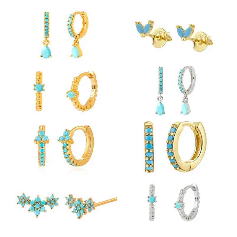 🌟 Turquoise Hoop Earrings Set for Women 🌟
