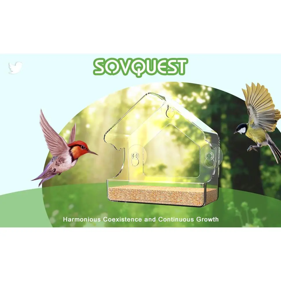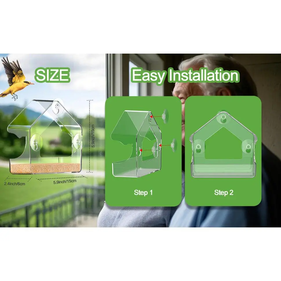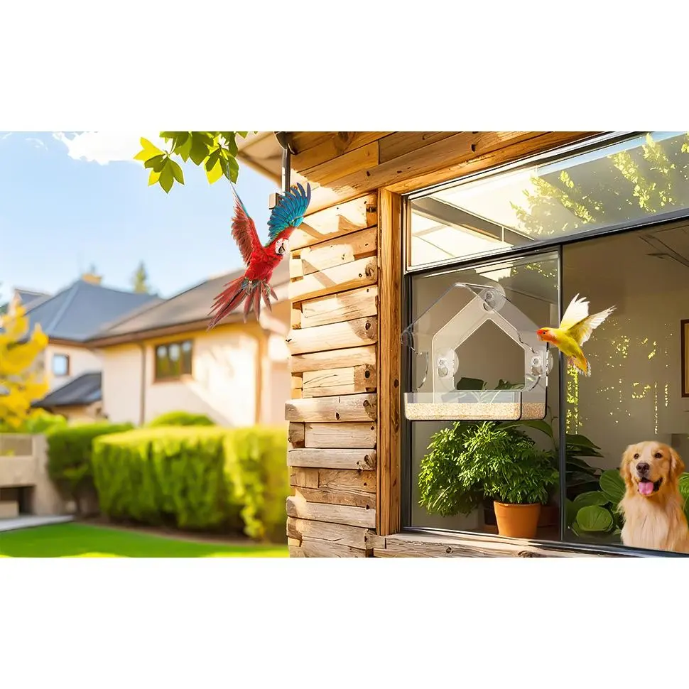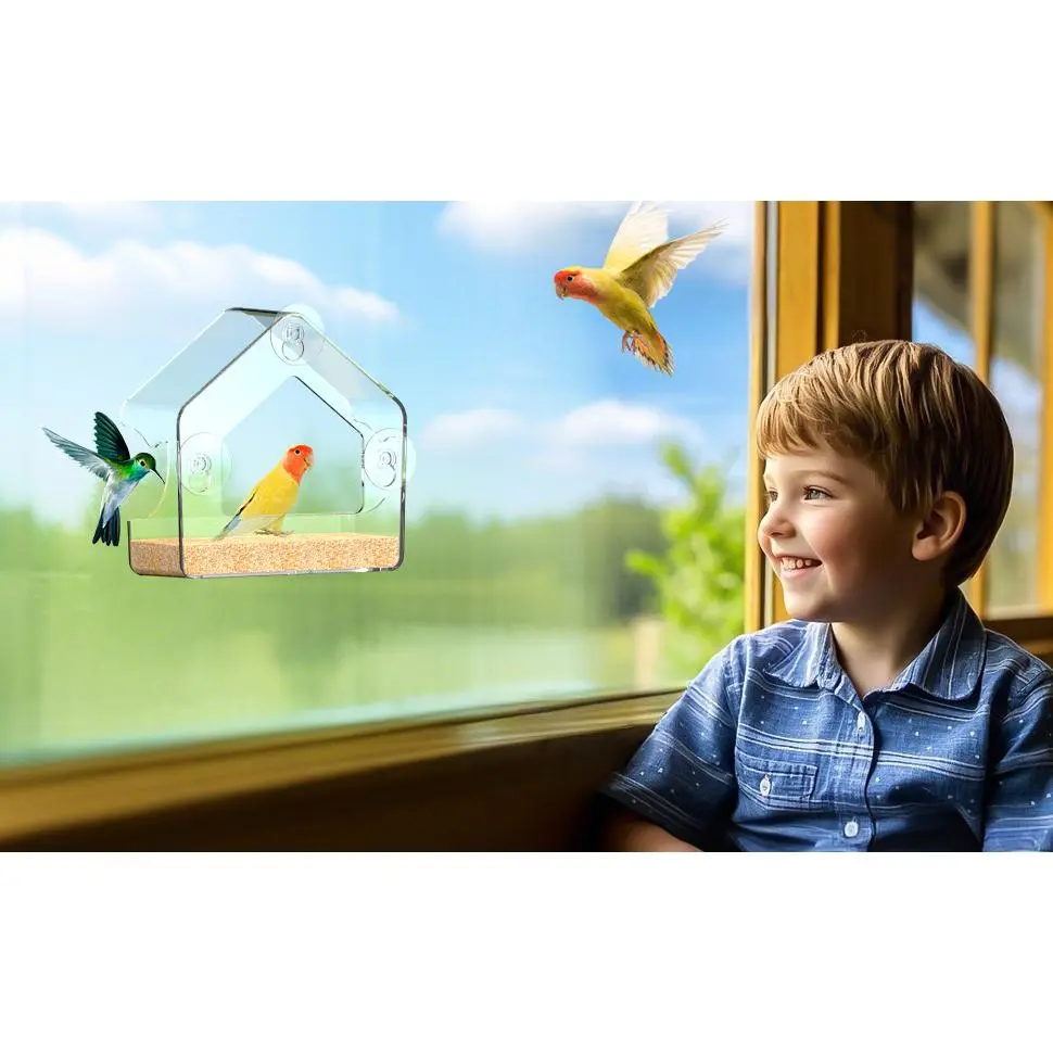 Acrylic Window Bird Feeder, Transparent Wall-Mounted Wild Bird Feeding Tray, Clear Strong Suction Cup Outdoor Feeder for Cardinals Finches Bluebirds, Weatherproof Seed Tray for Garden Patio