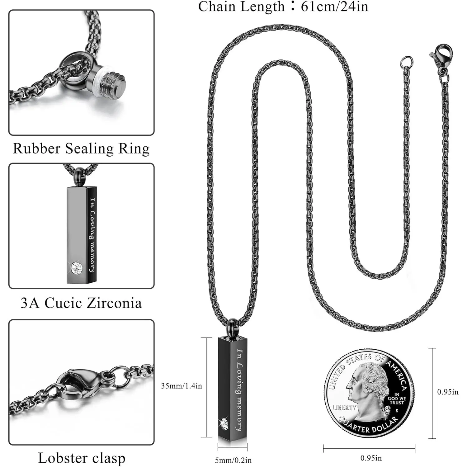 The classic black and silver pendant necklace will easily complement all your outfits. Each cremation necklace is adorned with sparkling cubic zirconia stones, making it stylish for everyday wear as well.