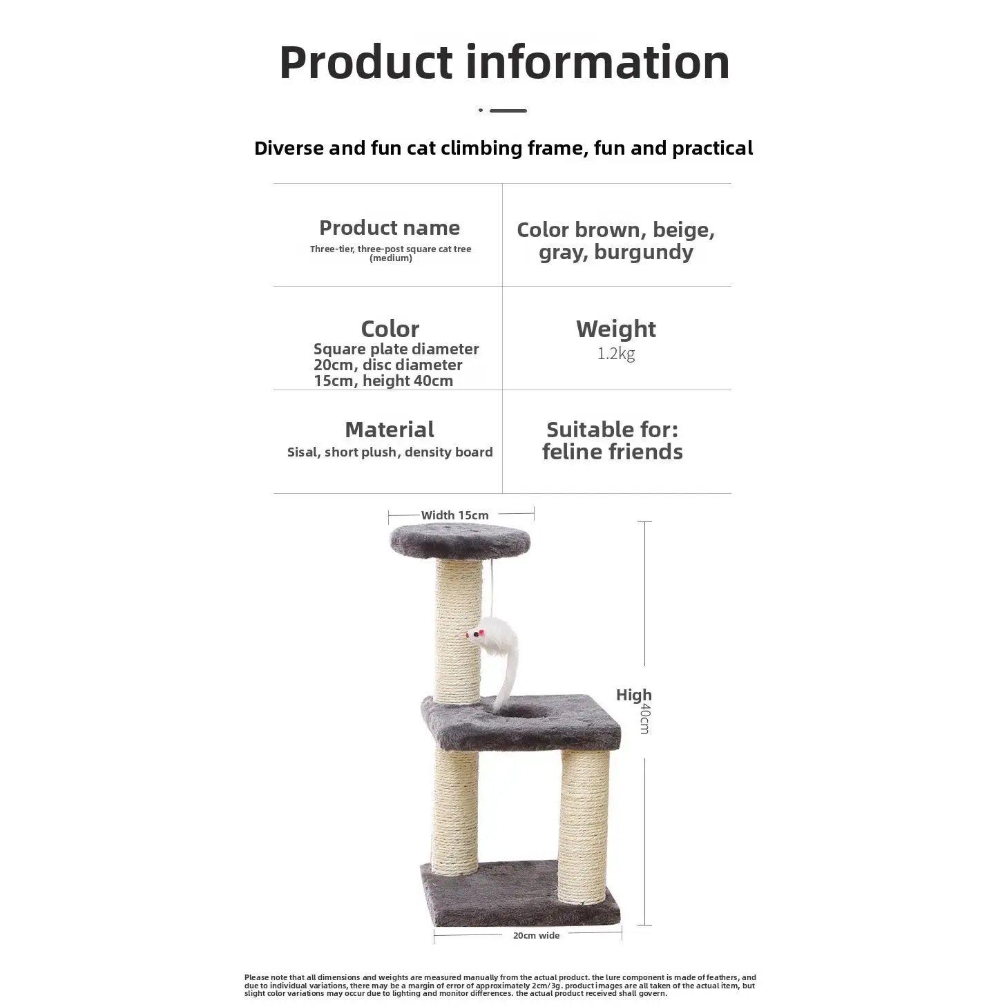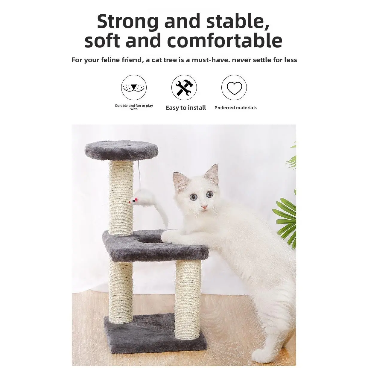 Cat climbing frame, integrated sisal scratching post, cat shelf, cat jumping platform, cat toy, cat tree