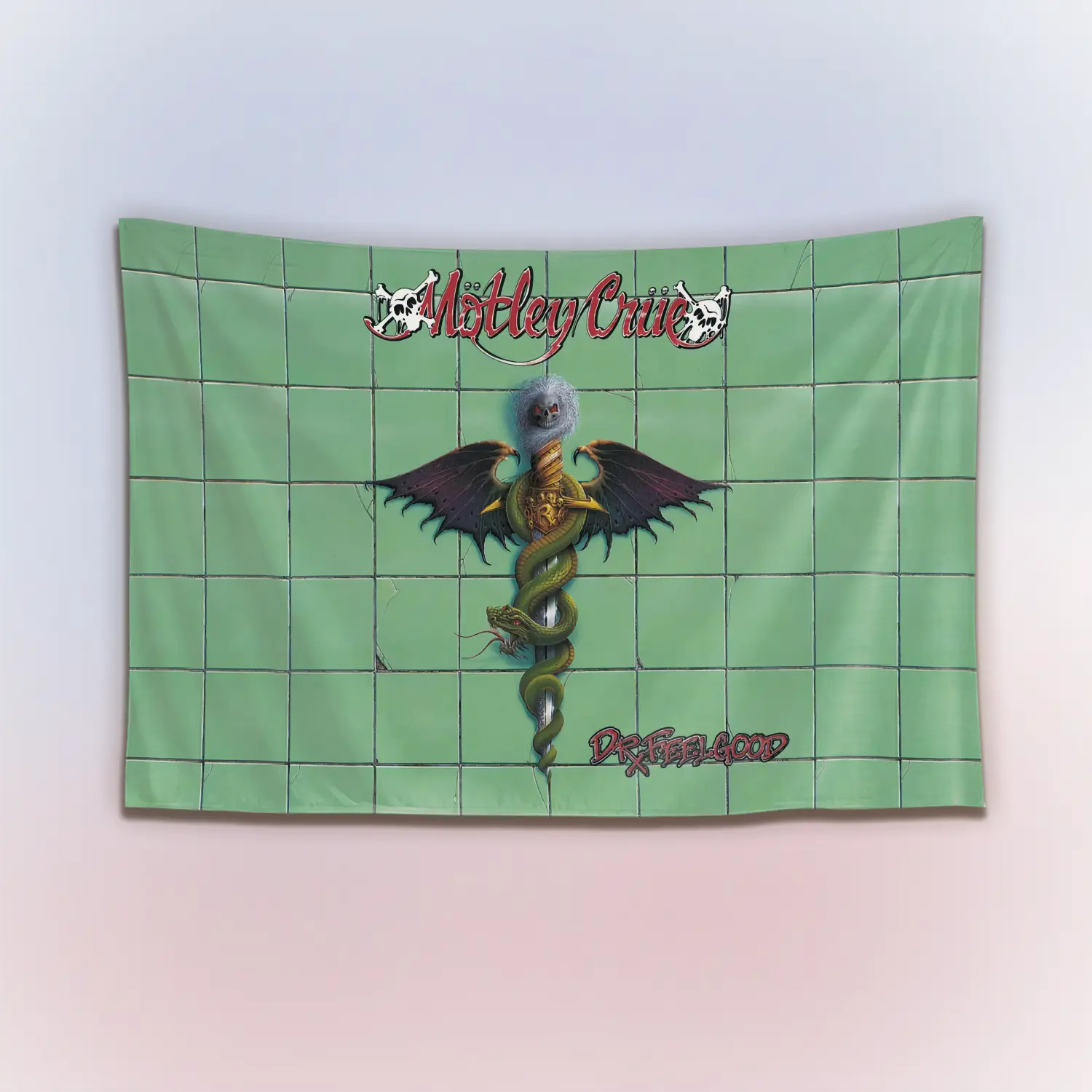 Vintage 90s Mötley Crüe Album Poster Tapestry, Retro Glam Metal Band Wall Hanging Decor, Classic Rock Music Art Banner, Bedroom Studio Wall Art, Gift for Fans