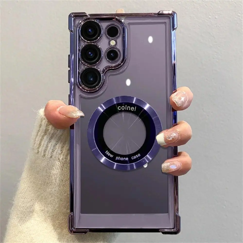Elevate your Samsung Galaxy S26 Ultra with this premium electroplated transparent case. It features a sleek design that complements your device's aesthetics. The case is equipped with four-corner airbag drop protection, ensuring your phone stays safe from accidental drops. Perfect for those who value both style and functionality.