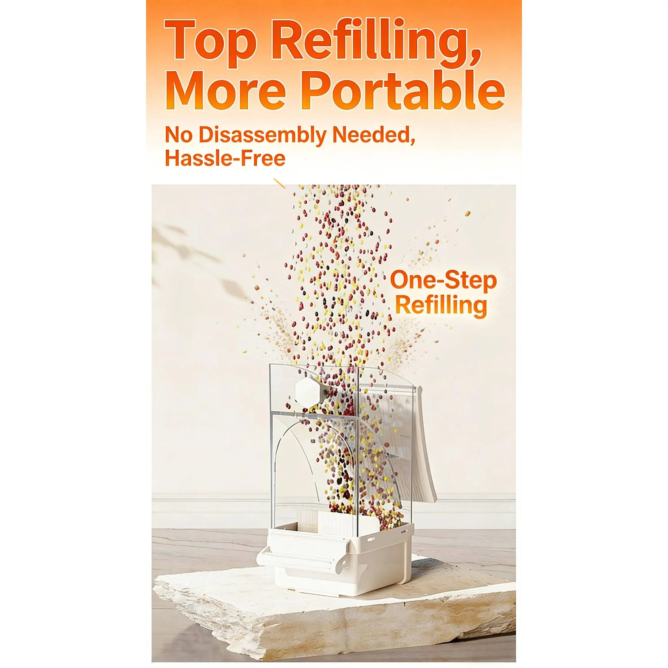 Benefits: One feeding can provide enough food for the birds for several days (depending on the size of the birds), so you don't have to worry about your beloved pets going hungry even if you go on a short business trip.