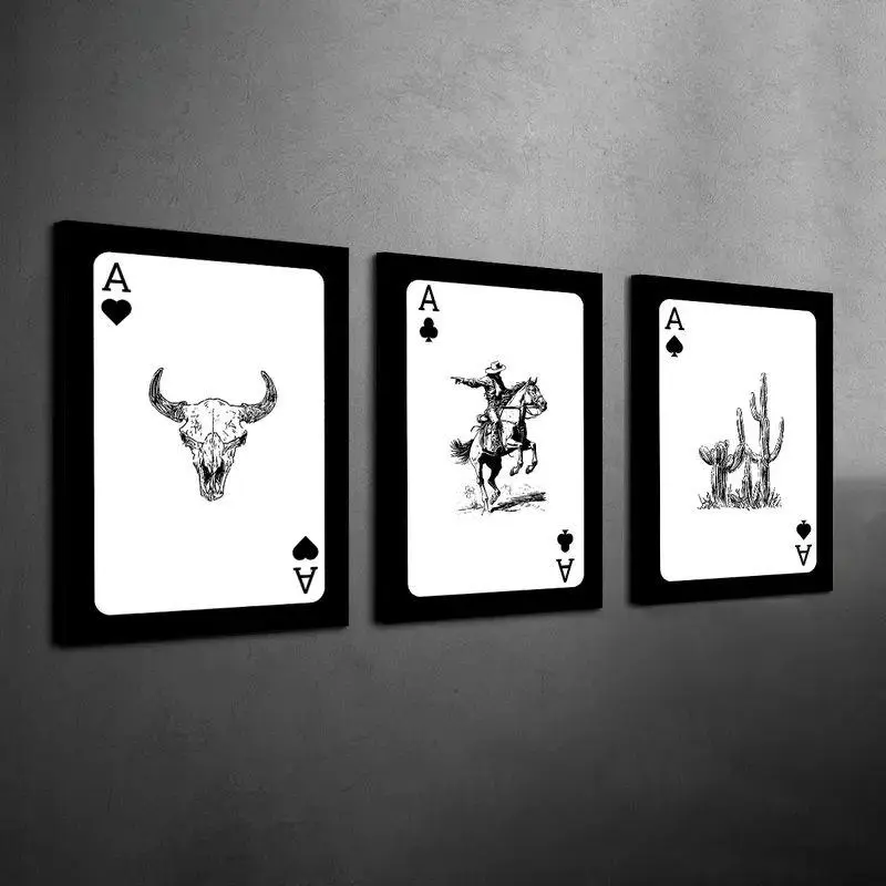 3-Piece Wood Canvas Wall Art – Vintage Western Cowboy & Bull Skull Prints, Ready to Hang, Waterproof Aesthetic Decor for Bedroom, Living Room & Bathroom