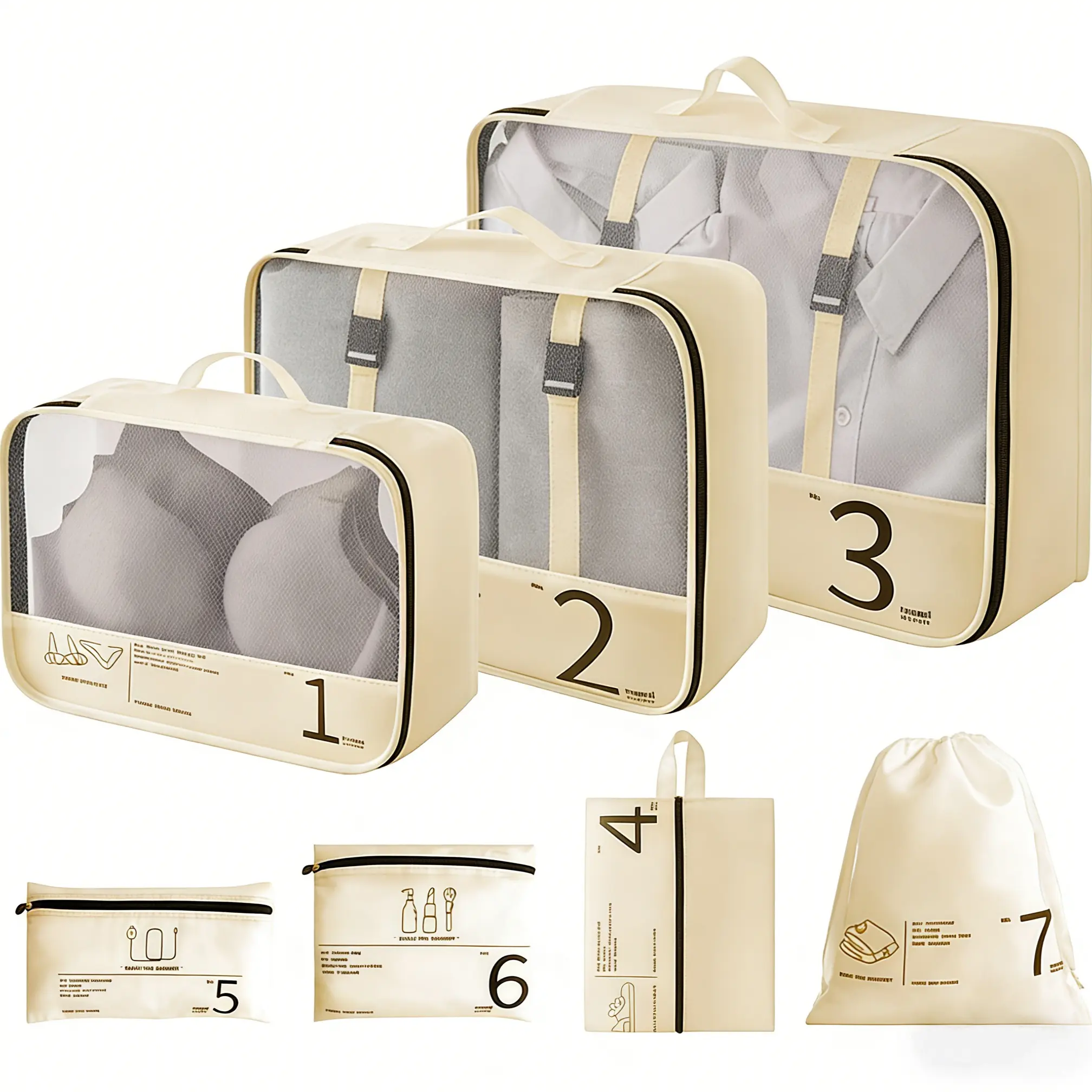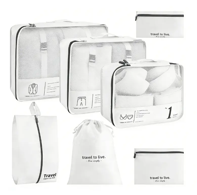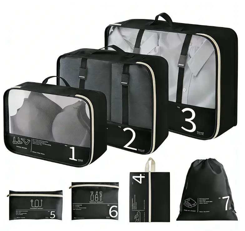 [Instant Luggage Organization] Seven varied sizes sort clothes by type, ending chaotic digging in suitcases, perfect for families managing multiple outfits during week-long vacation trips efficiently.