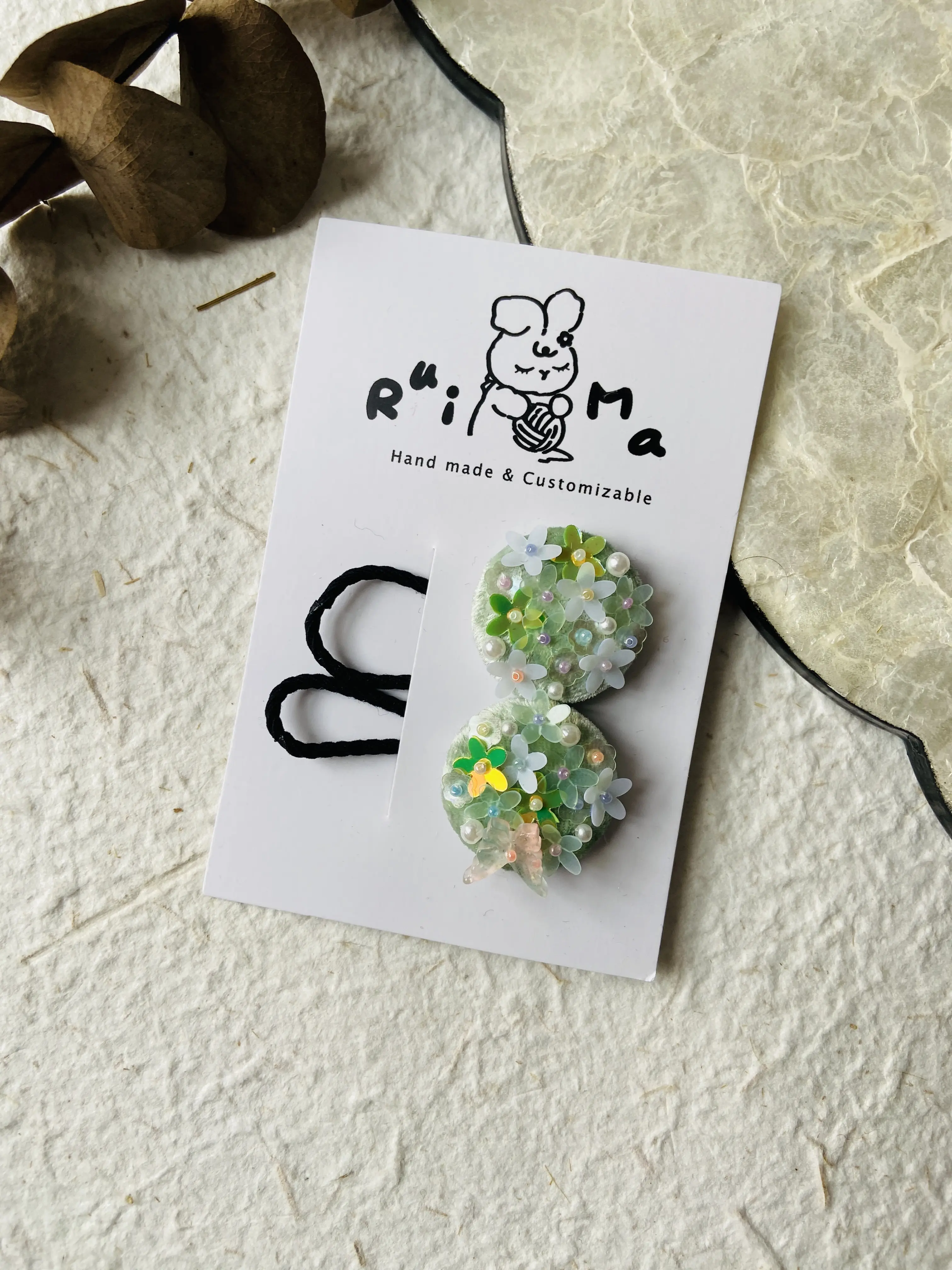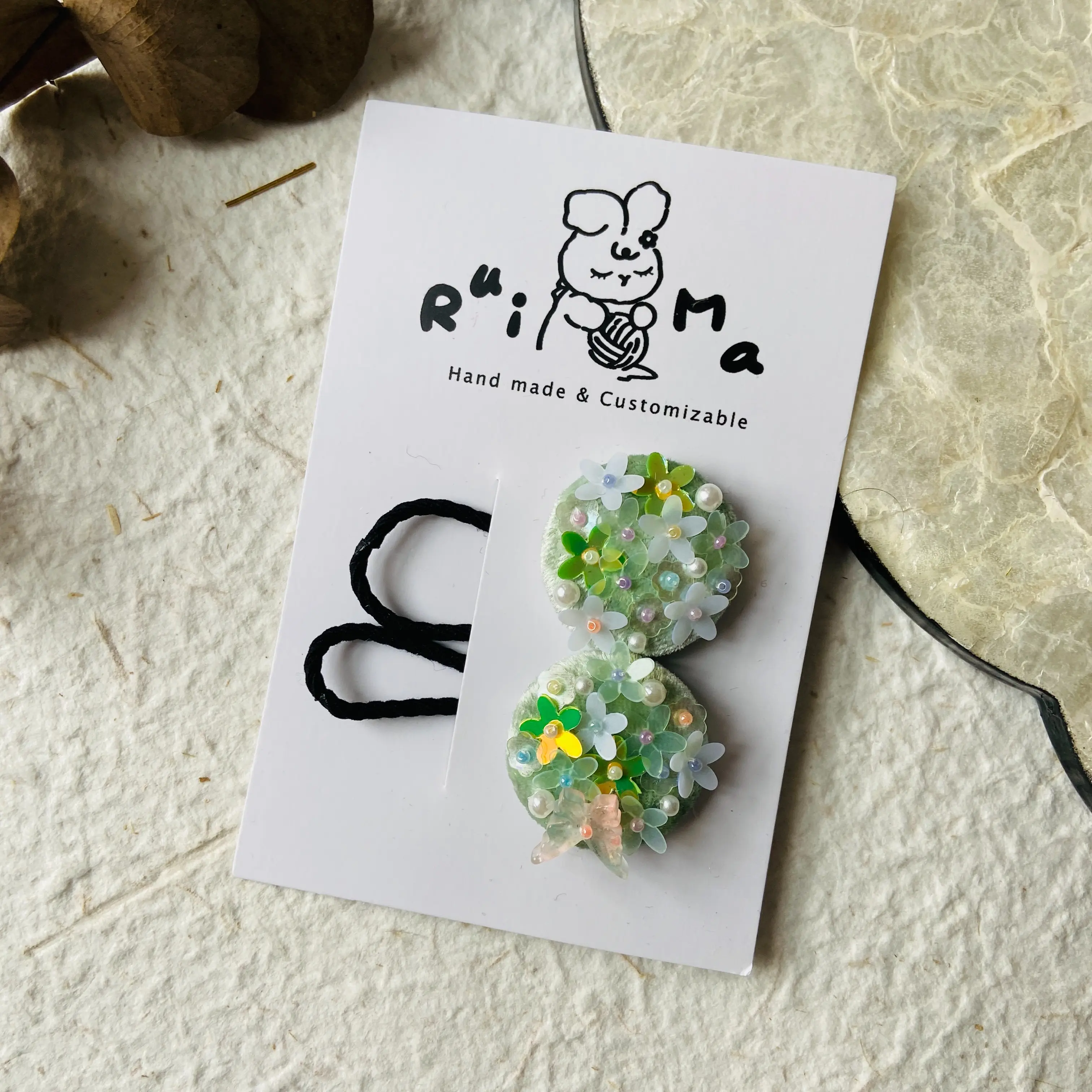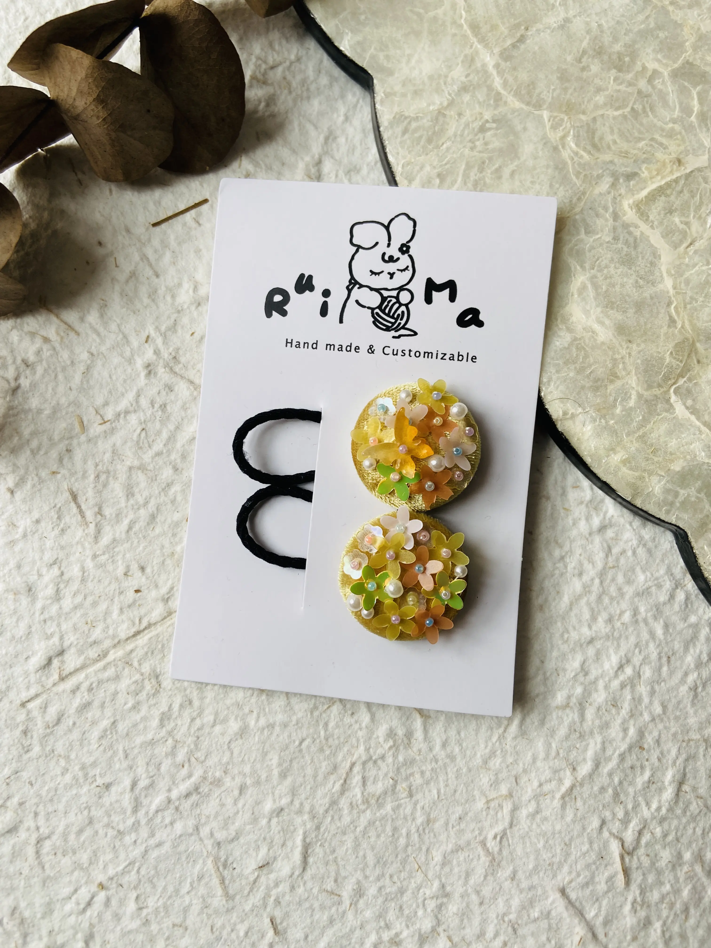 Each set is one-of-a-kind — tiny variations in embroidery and fabric placement make your hair ties special. That’s the beauty of handmade!