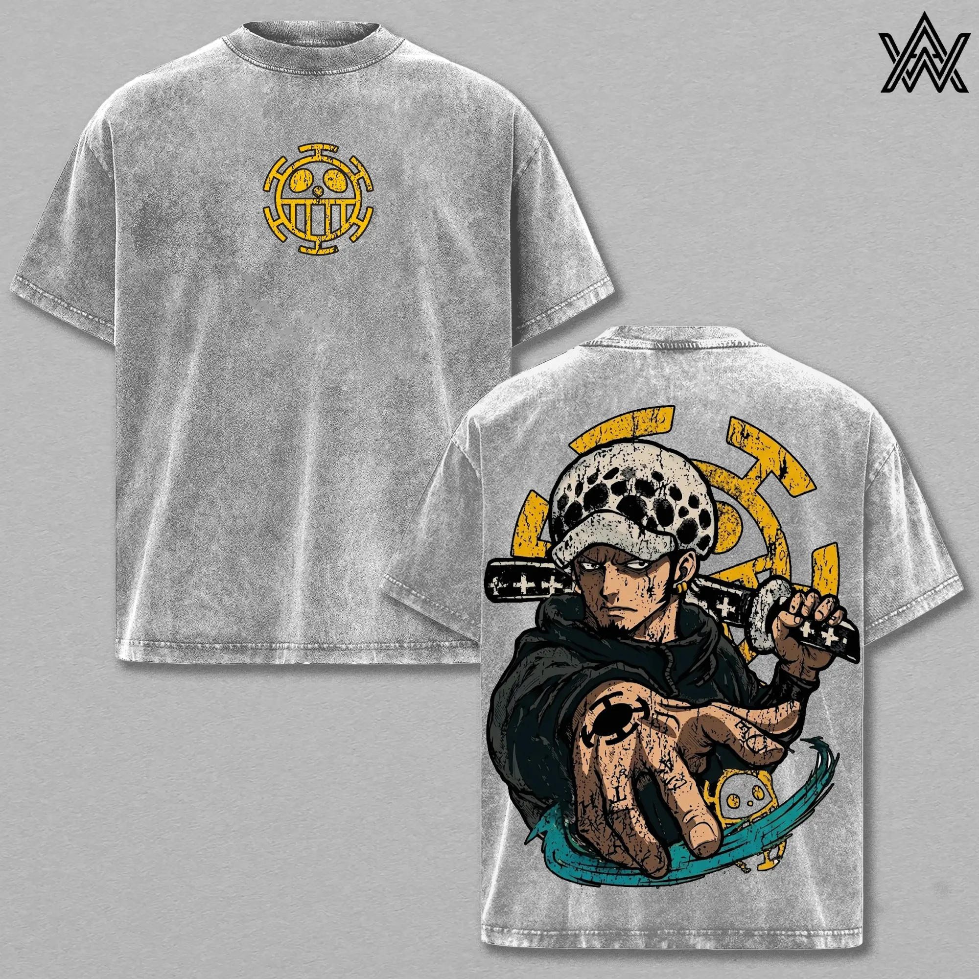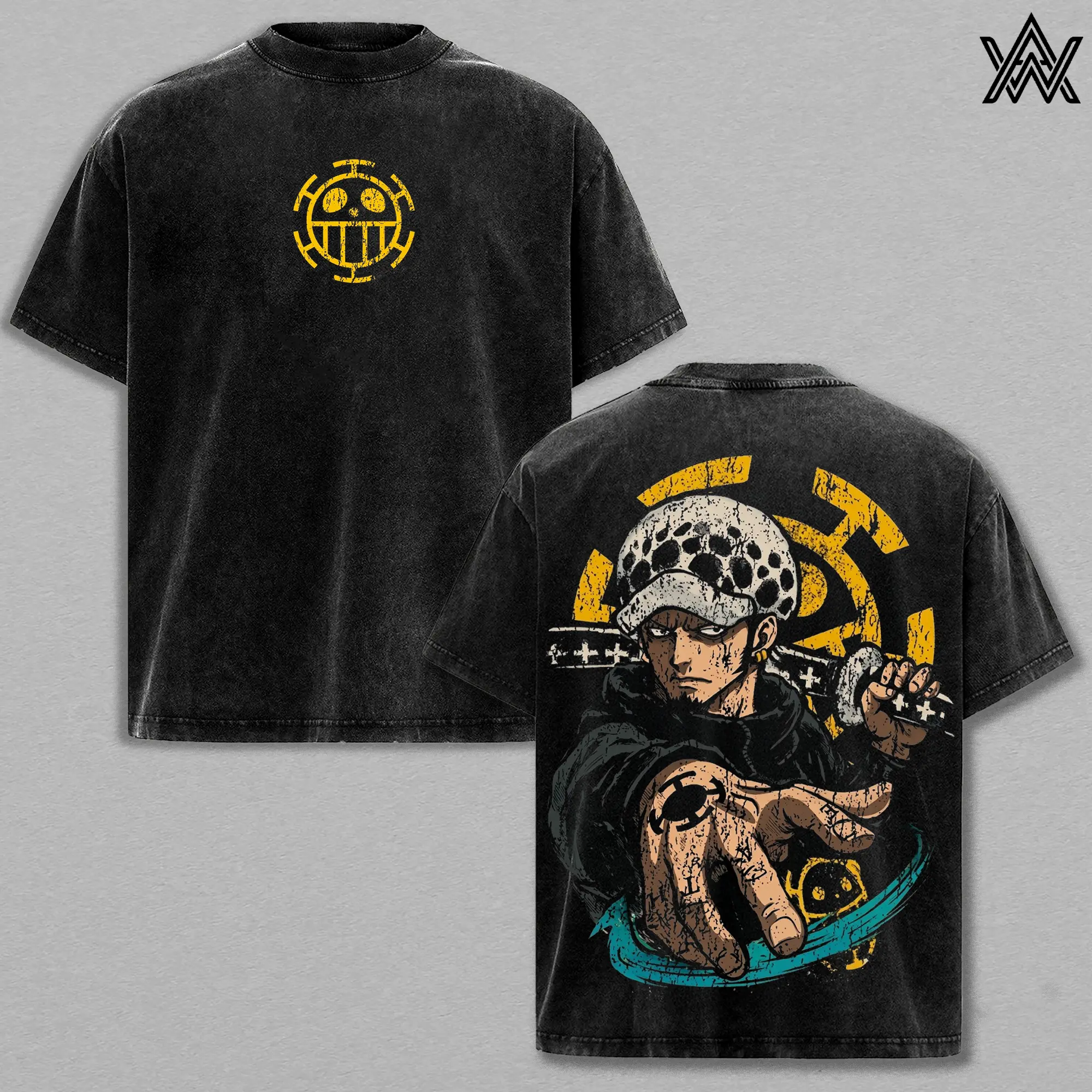 Trafalgar D. Water Law Tee Washed – One Piece Washed Anime Manga T-Shirt, Vintage Washed Surgeon of Death Graphic Tee, Unisex Oversized Streetwear Shirt, Ope Ope Power Anime Aesthetic Tee, Gift for One Piece Fans
