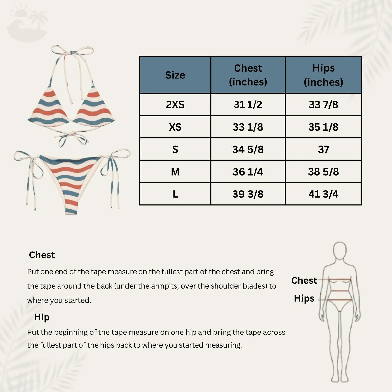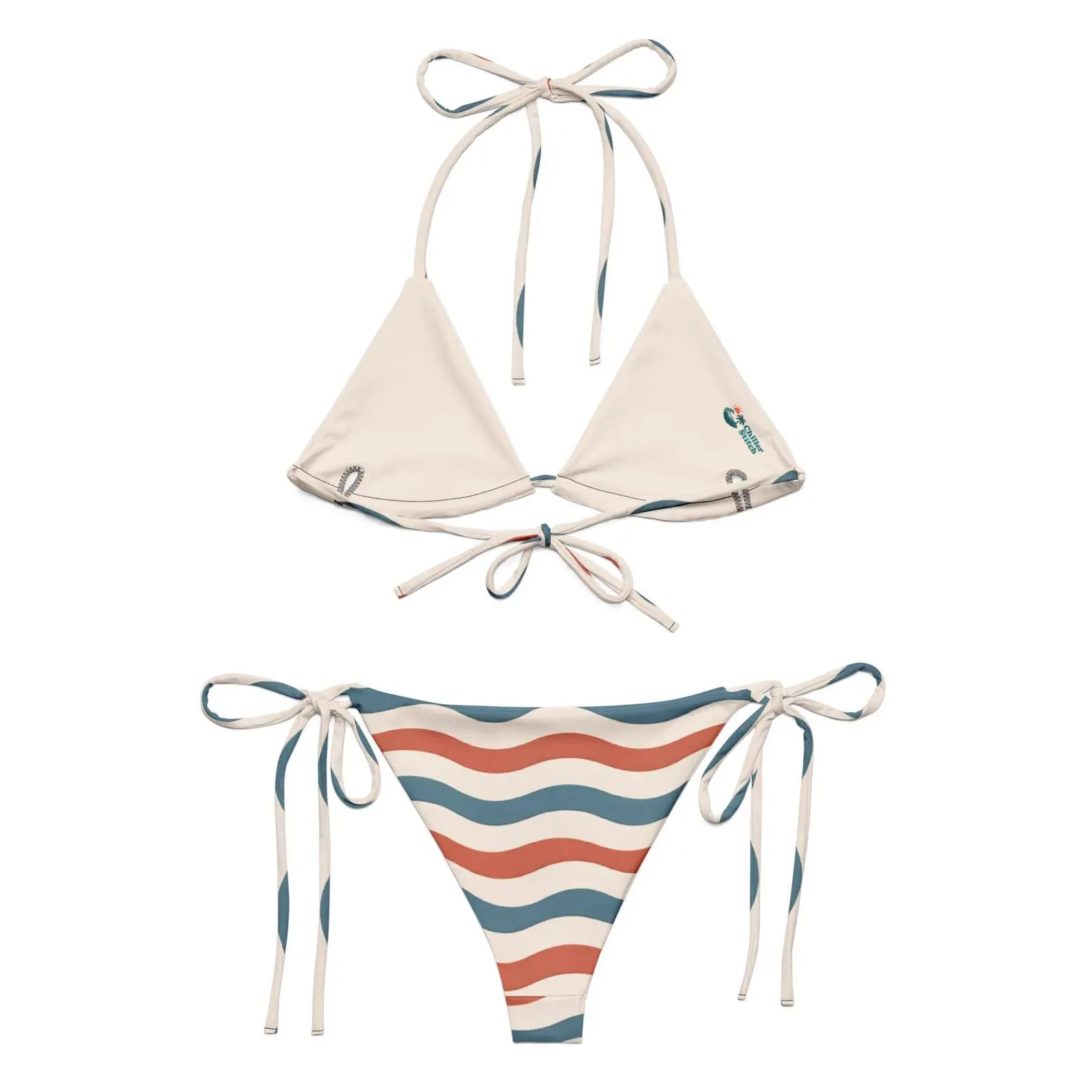 Simple and elegant, our unique custom bikini swimsuit includes 2 pieces – a string tie bikini bottom and a string bikini.