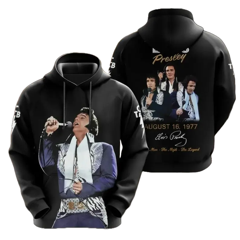 5. Elvis 3D Hoodie, King of Rock N Roll Tribute Sweatshirt, Vintage 70s Elvis Graphic Apparel, Music Legend Memorial Gift