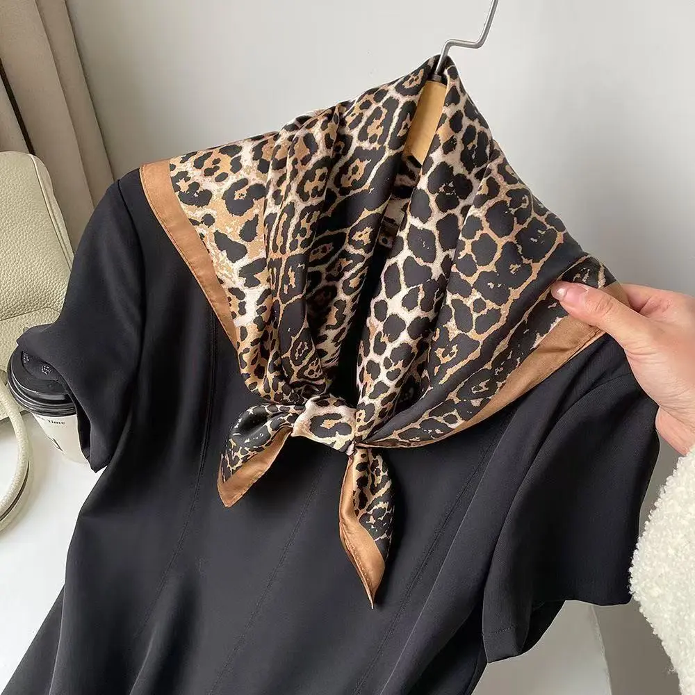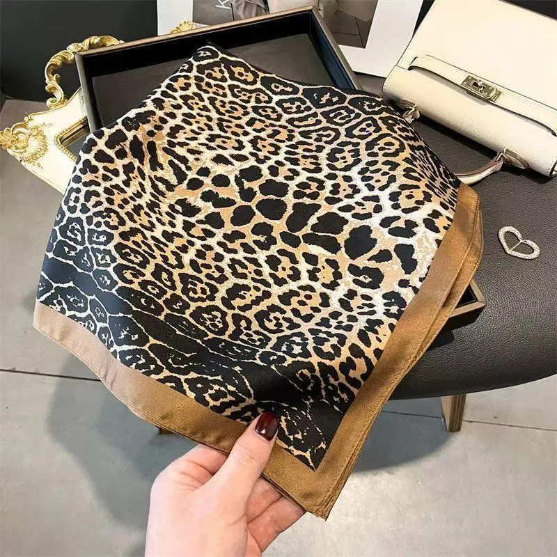 Women’s imitation silk scarf, women’s headscarf, handkerchief, genuine silk scarf, elegant square leopard print silk scarf—suitable for weddings, parties, art dates, outings, travel, and as a gift for women.