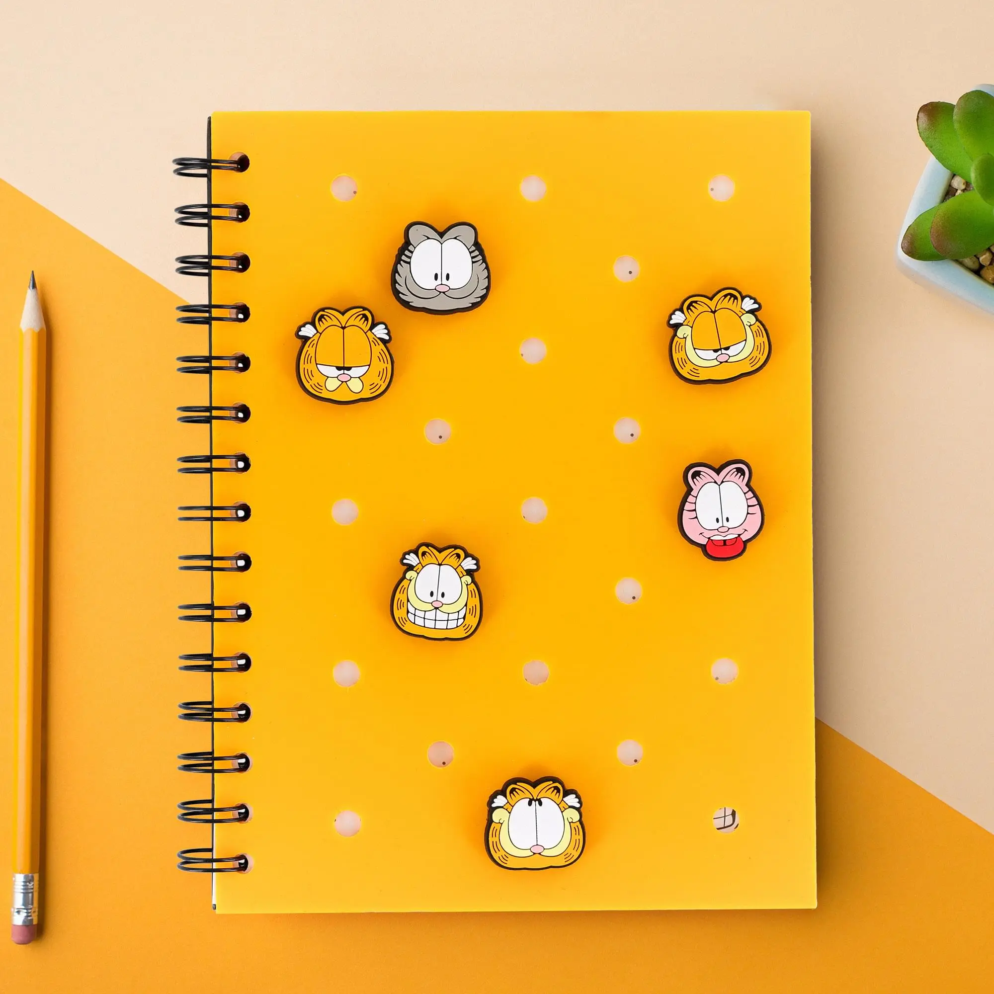 Stay organized the Garfield way, laid-back, expressive, and totally fun, with the Garfield 160-Page Silicone Spiral Journal with Pop Charms. Perfect for note-taking, journaling, doodling, or daydreaming about lasagna, this uniquely designed journal combines functionality with playful charm. Featuring a soft, flexible silicone cover and 6 attachable and repositionable pop charms, this journal lets you customize your cover to match your mood, just like Garfield switches between sarcasm and snack cravings. With 160 lined pages, a handy PVC storage pouch, and a spiral-bound layout for easy writing, this journal is ideal for school, home, or anywhere you need to jot down your genius (or grumpy) thoughts. Whether you're journaling your daily routine or crafting a to-do list Garfield would absolutely ignore, this notebook brings humor and creativity to every page.
