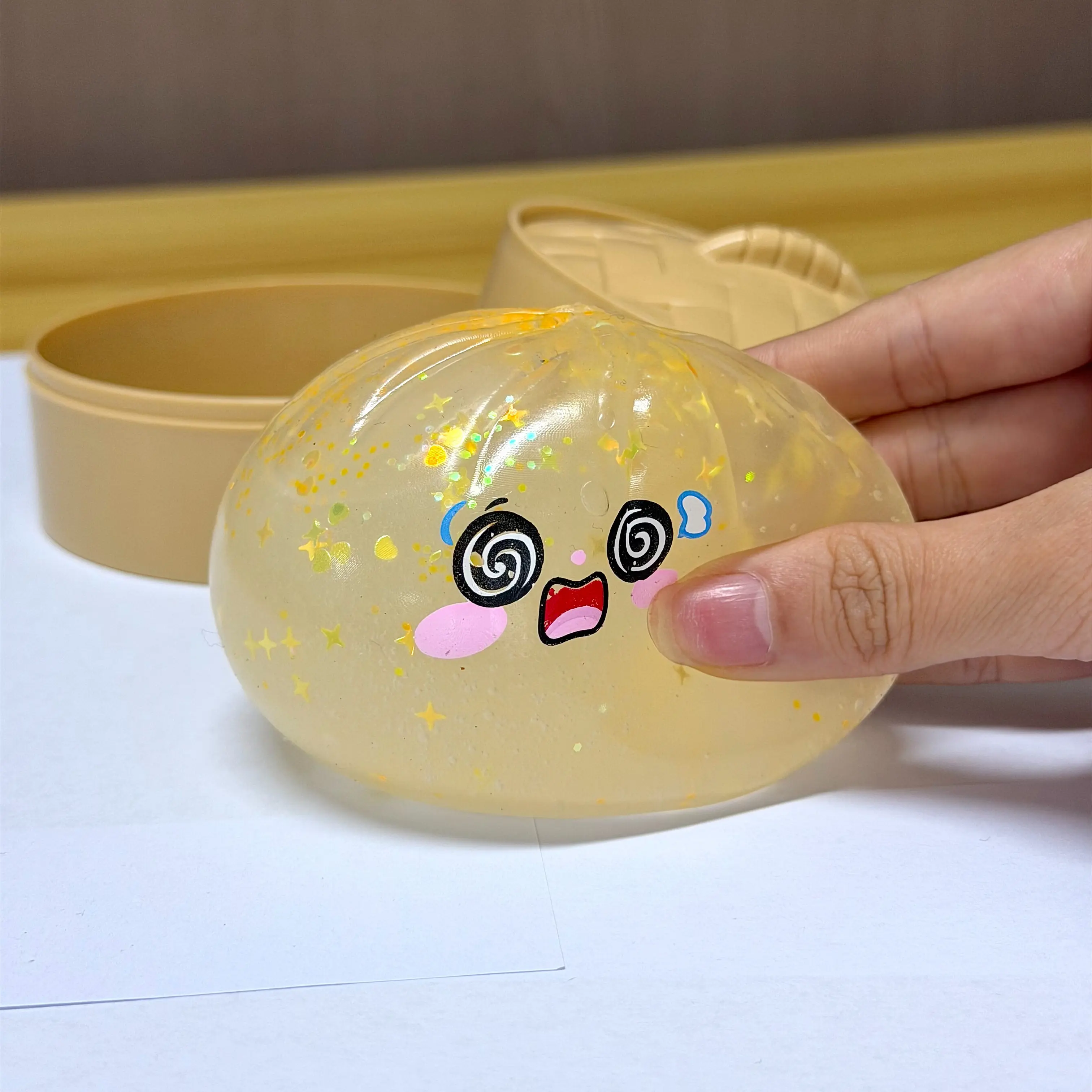 Pale Yellow Glitter Cute Steamed Bun Squishy Slow Rising Stress Relief Fidget Toy With Steamer Box