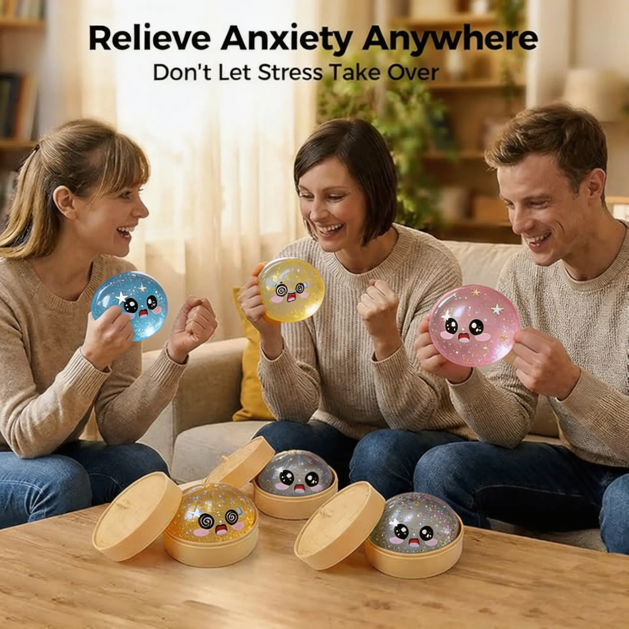 Cute pale yellow glitter steamed bun squishy, slow rising & soft. Great for stress relief, fidget play, and as a gift. Comes with a mini steamer box for display.