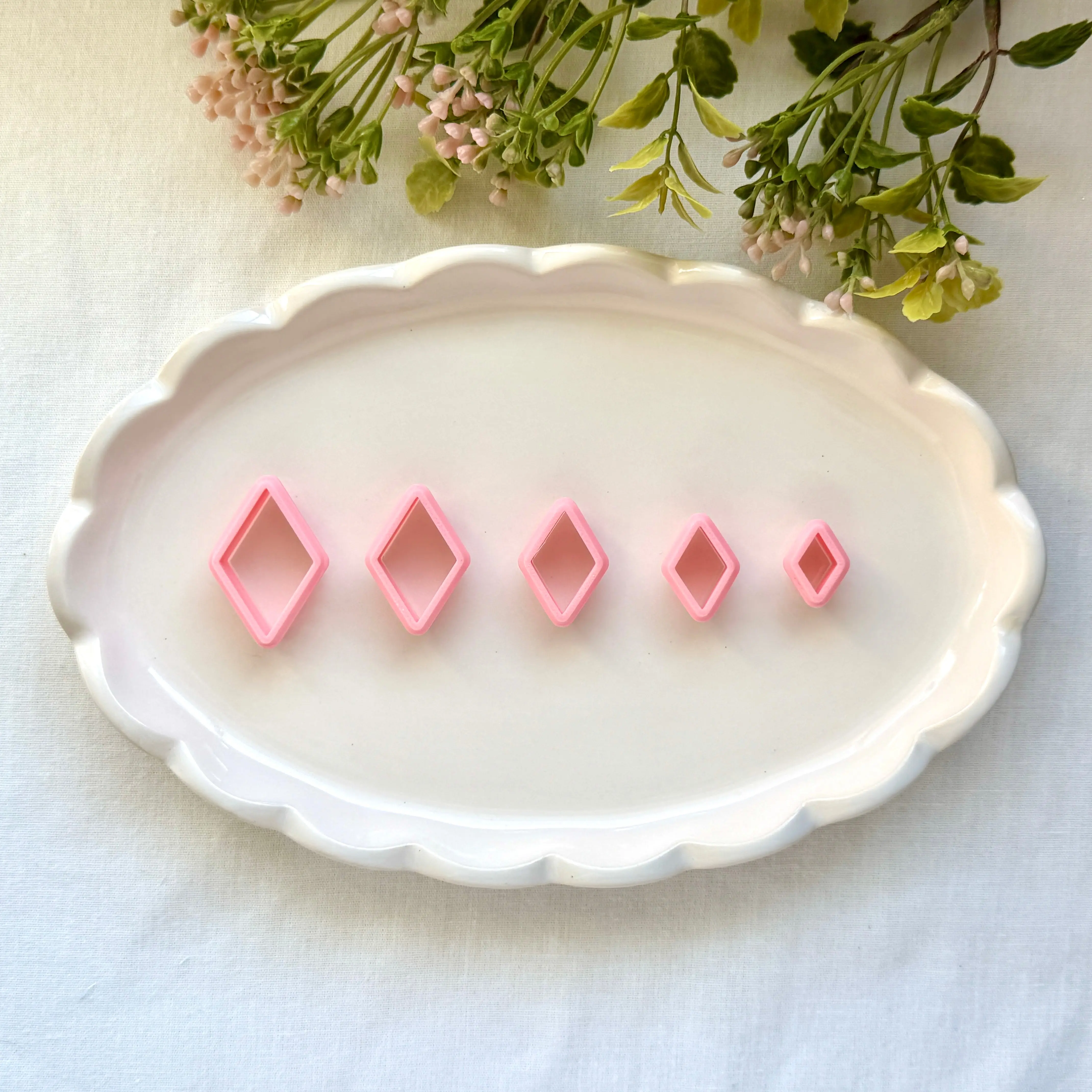 Professional-grade 3D printed cutters. Designed specifically for polymer clay artists, these tools are engineered to provide the cleanest possible cuts, significantly reducing your sanding time and ensuring a professional finish for every piece. Key Features • Ultra-Sharp Cutting Edge: Featuring a 0.2mm tapered blade, these cutters slice through clay with precision and minimal drag. • Reinforced Base: Each cutter is designed with a sturdy, thickened base to provide a comfortable grip and prevent bending during use. • Durable Material: Printed with high-quality, eco-friendly PLA+ for a rigid, long-lasting tool that maintains its shape. How to Use 1. Preparation: Place your conditioned clay on a smooth, non-porous surface (like glass or tile). 2. The Cut: Press the cutter firmly and evenly into the clay. 3. Release: Gently wiggle the cutter or lift it straight up. For complex shapes, a light dusting of cornstarch or a dip in water can act as a release agent to ensure the clay pops out perfectly. Care Instructions • Cleaning: Hand wash with lukewarm soapy water and a soft toothbrush to remove any clay residue. • Storage: Store in a cool, dry place away from direct sunlight. • Important: These cutters are not dishwasher safe. High heat can warp the 3D printed plastic. Keep away from ovens and extreme heat sources.