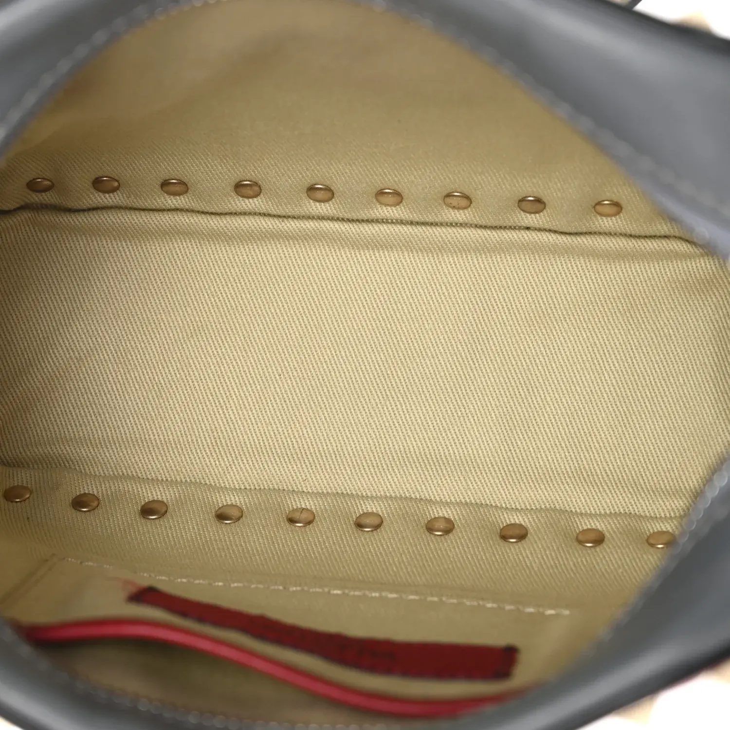 Pre-owned Vitello (Calfskin) Leather Shoulder Bags VALENTINO GARAVANI Vitello Colorblock Rockstud Camera Crossbody Bag Deep Rose Clover