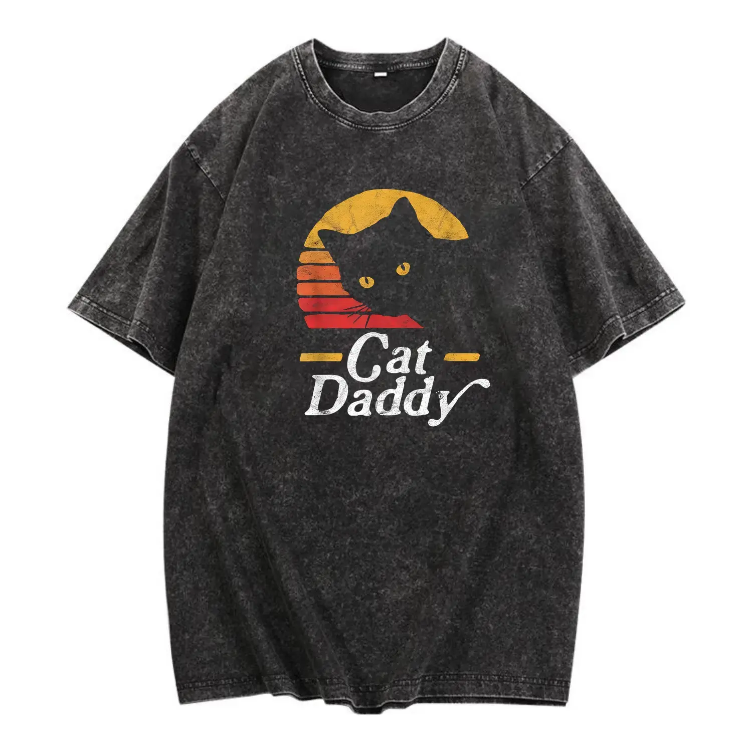 ·Standout double-sided printed design: compact vintage black cat sunset graphic on the front chest, enlarged eye-catching Cat Daddy graphic on the back for full style impact