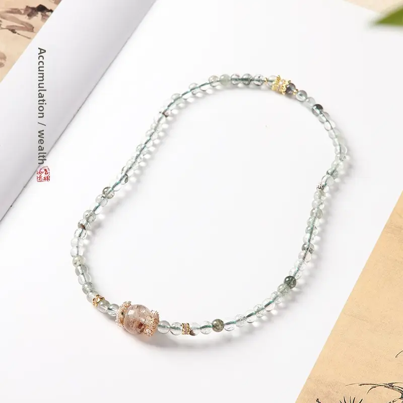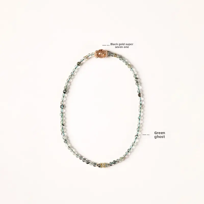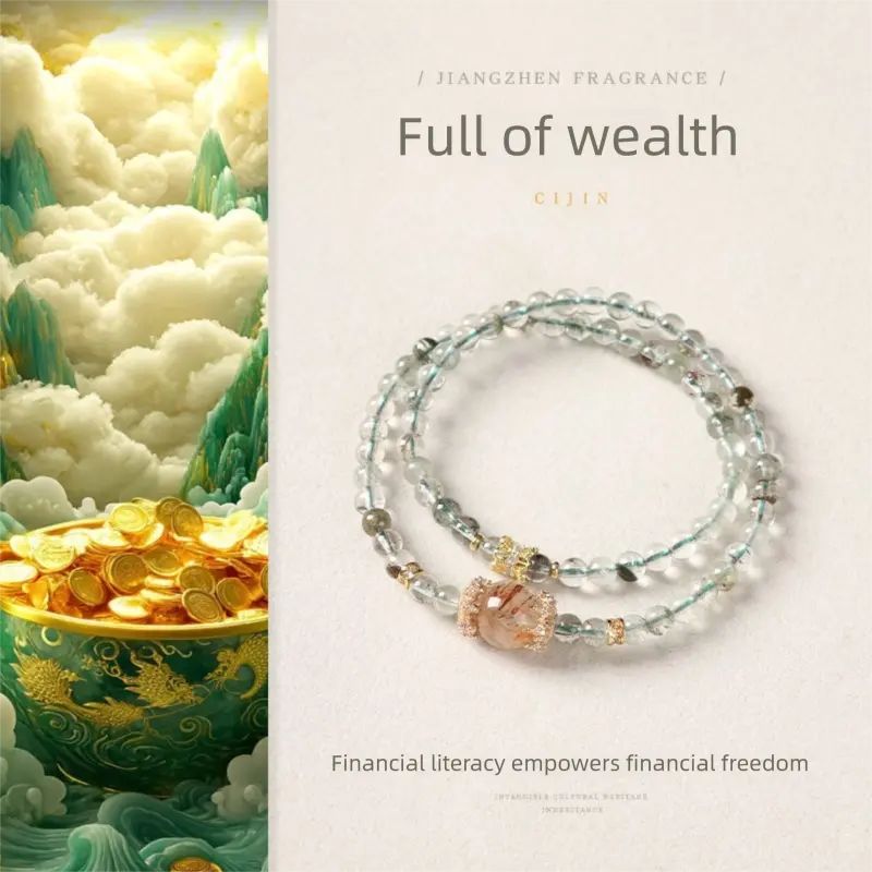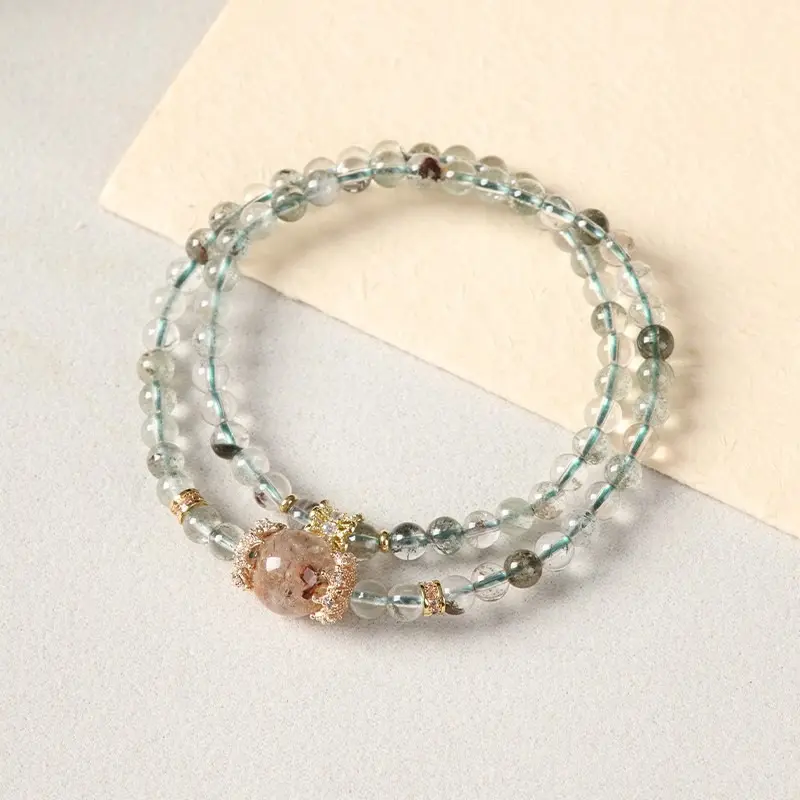 [Full Warehouse Wealth] crystal bracelet, green phantom quartz super seven double layer, unisex, daily wear gift, natural stone gold accents, wealth career success balance vitality symbol