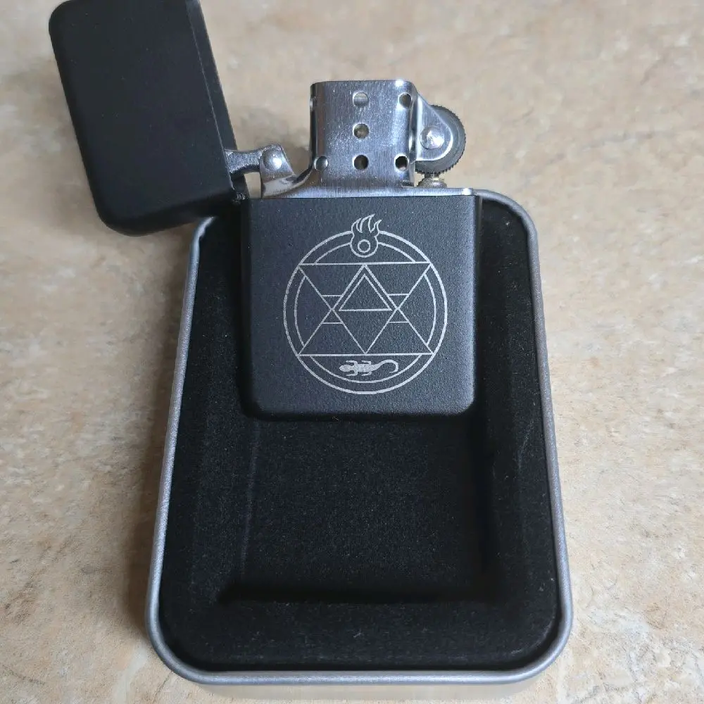 FMA Engraved Black Lighter with Unique Symbol Design for Stylish Use