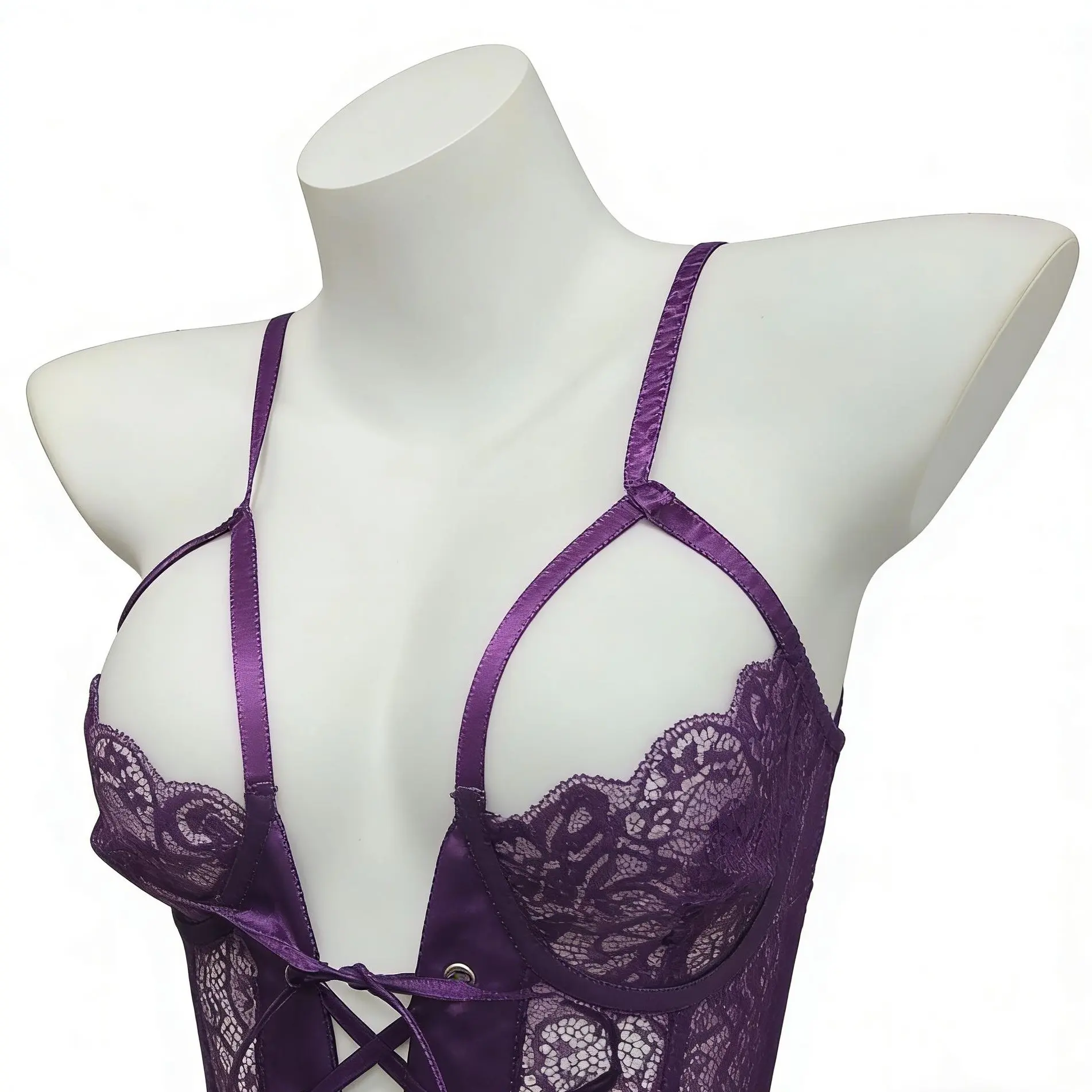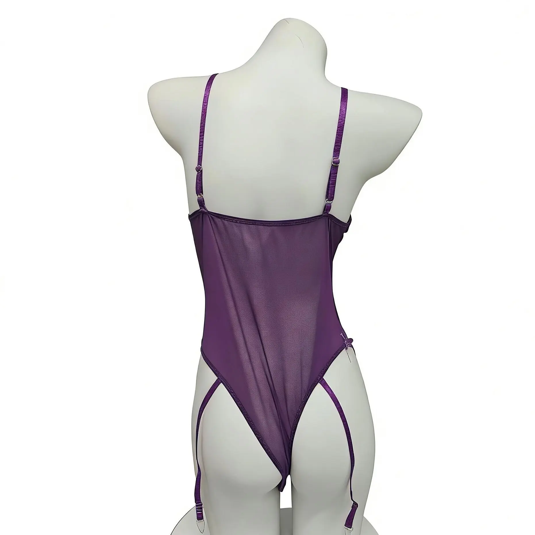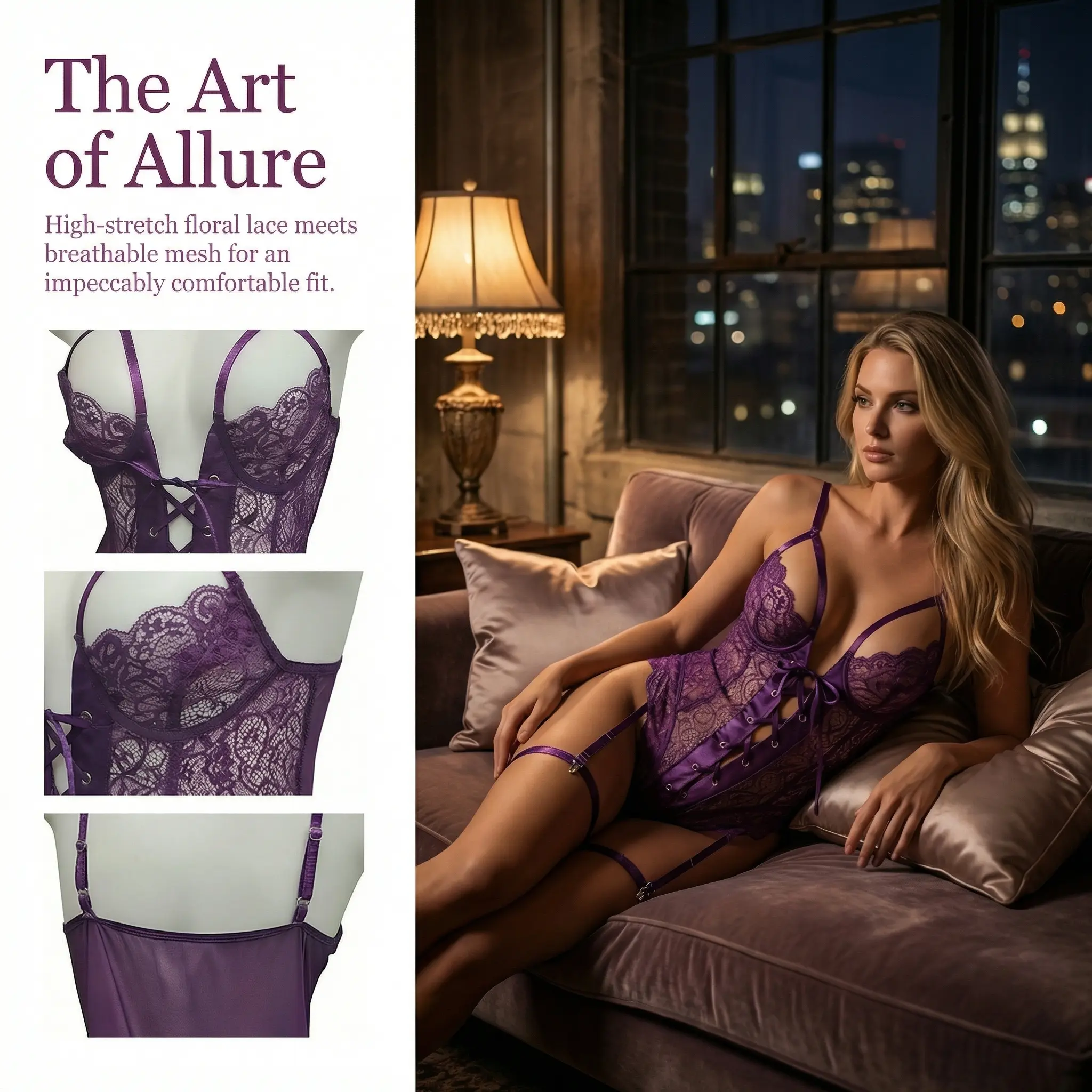 SILIX Purple Lace Bodysuit | Sexy Feminine Lingerie Set Underwear | Form-Fitting | Breathable Lace-Up | Summer Women Sleepwear