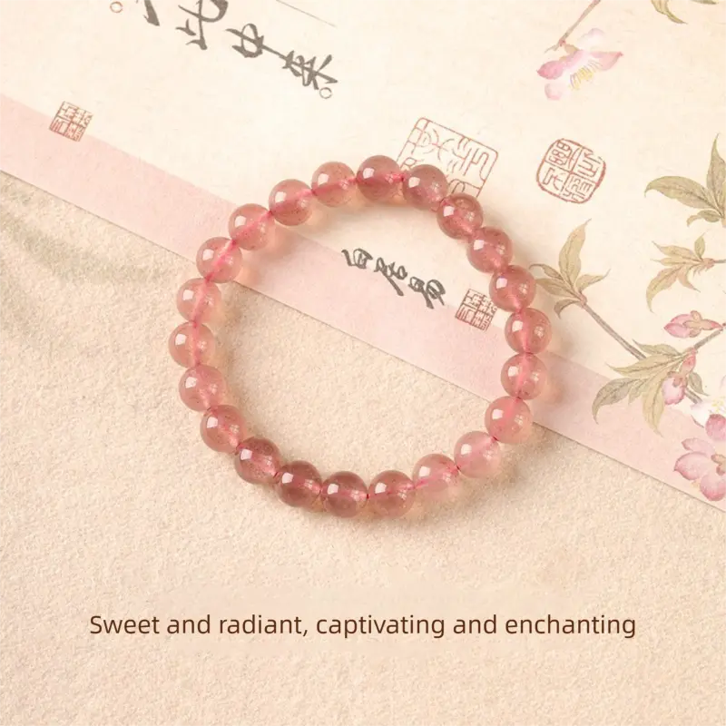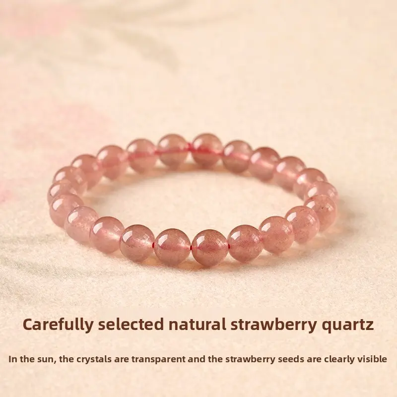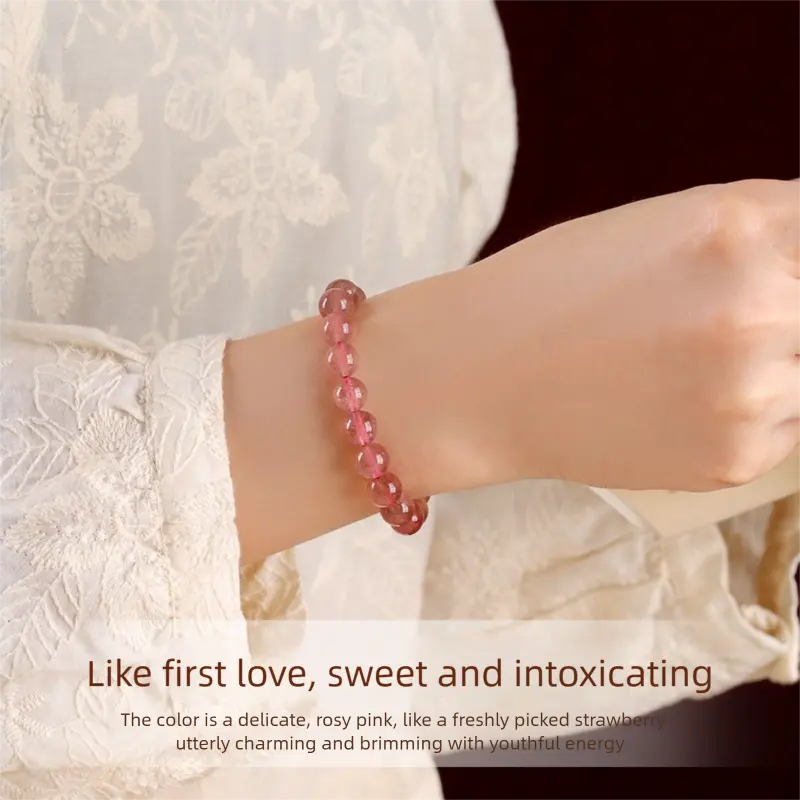 [Love Knocks Door] crystal bracelet, strawberry quartz single strand, unisex, daily wear gift, natural stone, love romance symbol