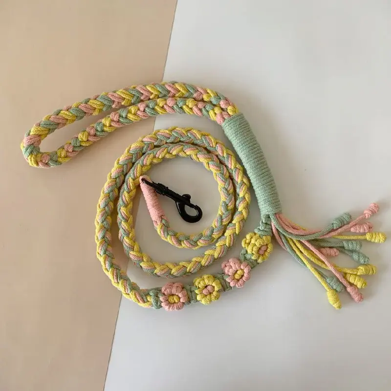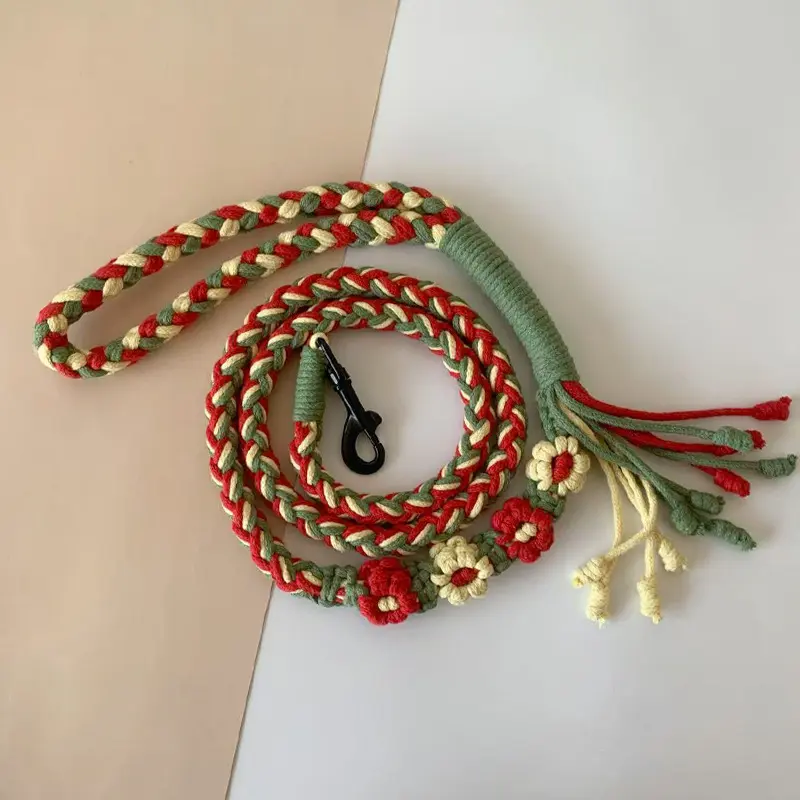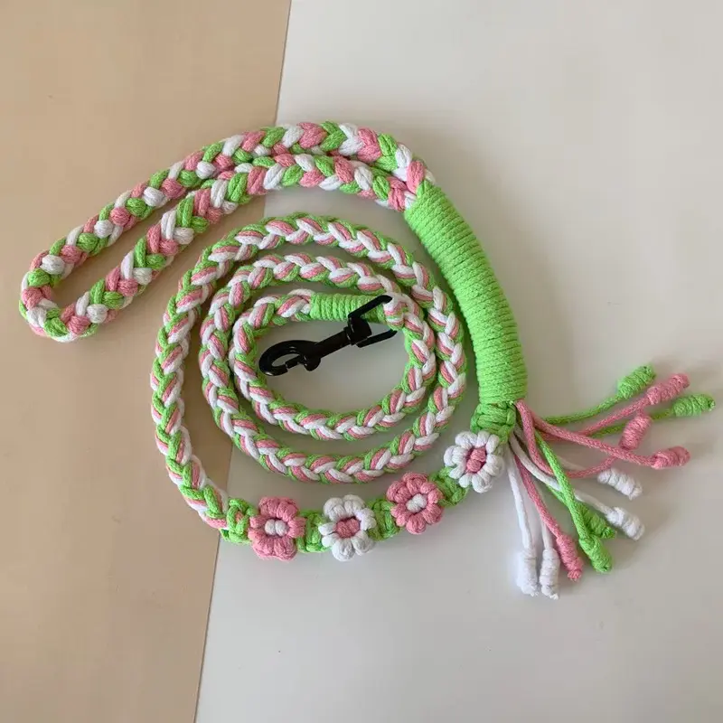 Universal Colorful Dog Leash - Handwoven Cotton Rope Lead for Small Medium Large Dogs - Heavy Duty & Soft Braided Pet Walking Leash - Creative Fashion Accessory for Outdoor Training