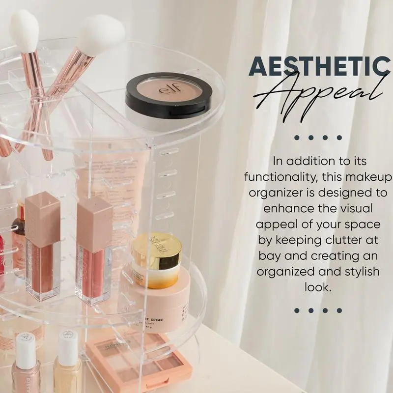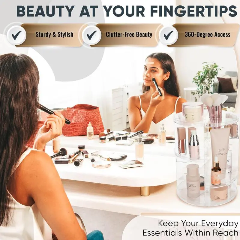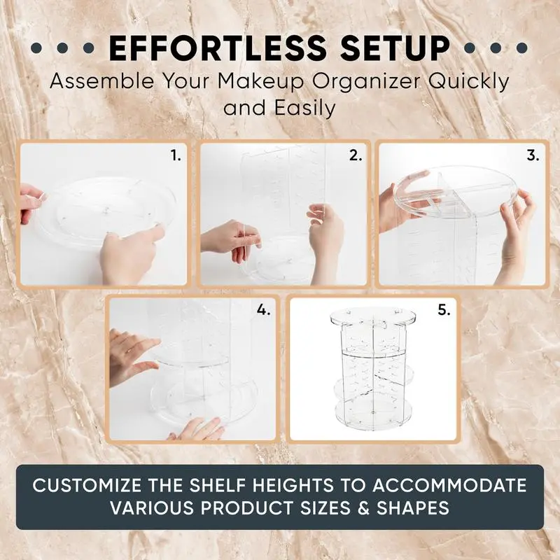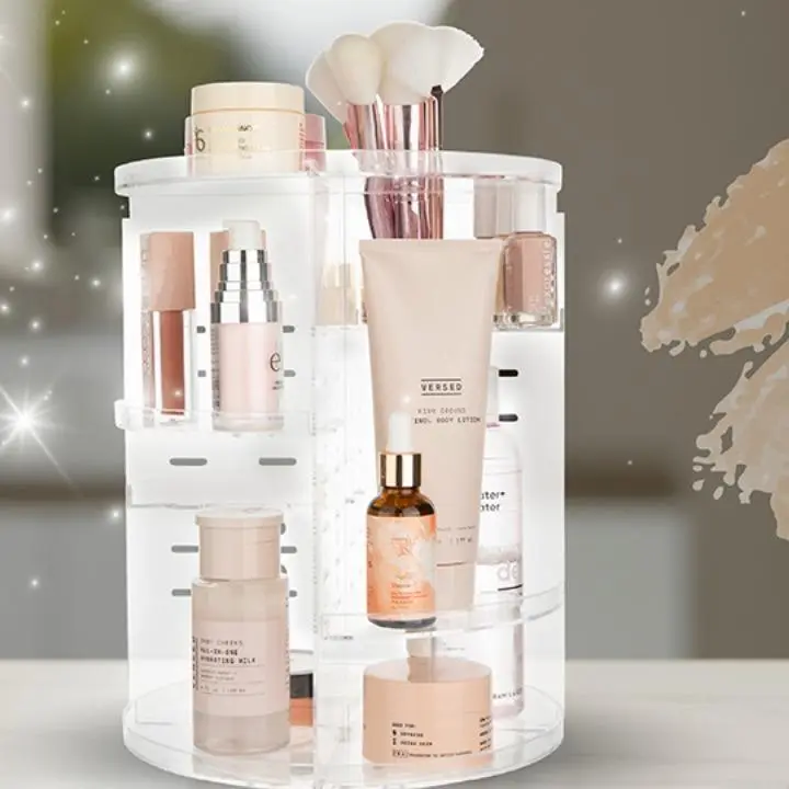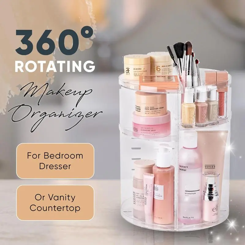 360° Rotating Makeup Organizer, Spinning Cosmetic Storage Rack with Adjustable Shelves, Space-Saving Vanity Organizer, Multicolor