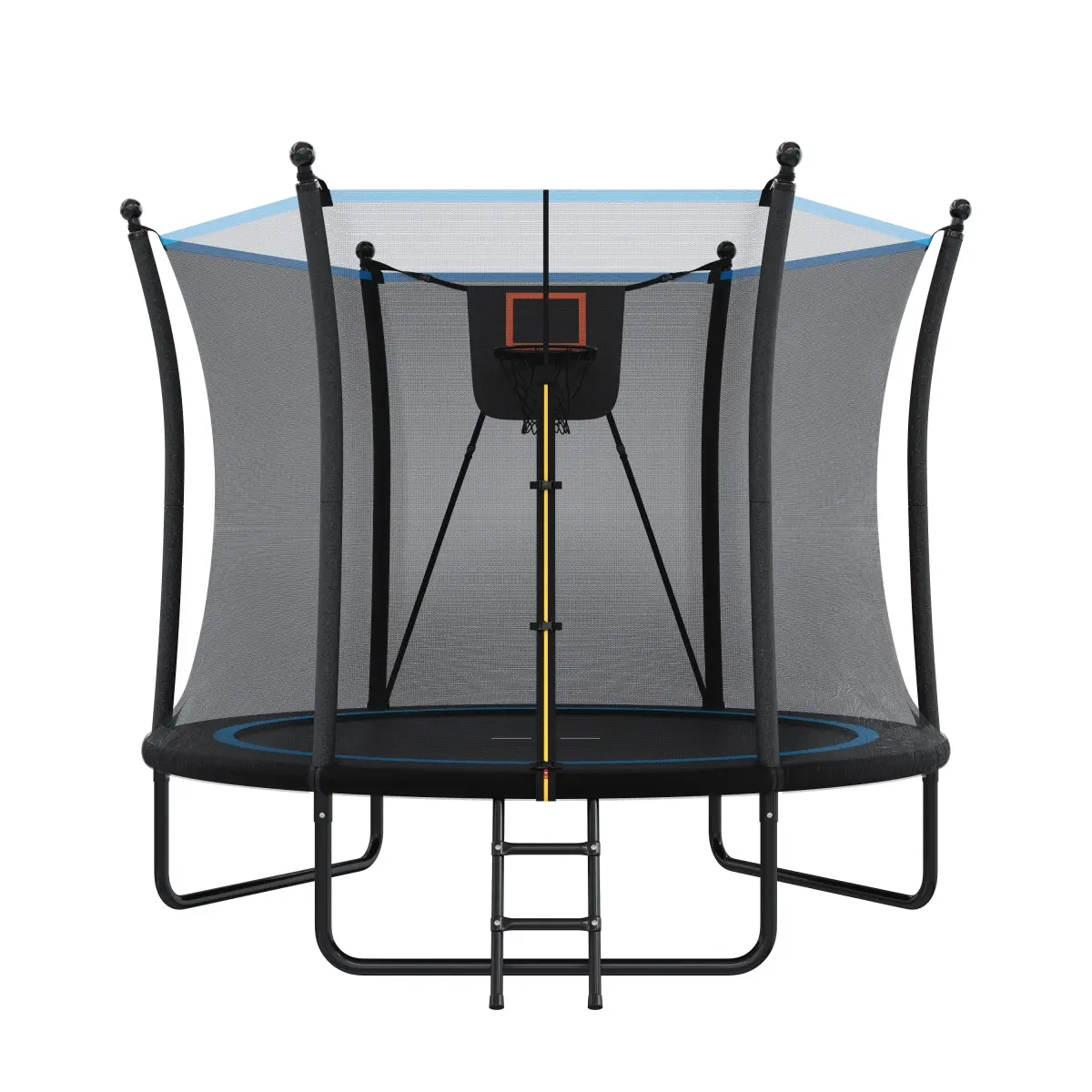 ·8 FT Trampoline with Safety Enclosure – Equipped with 6 high enclosure poles and a UV-proof trampoline enclosure net. Foam-padded poles provide protection while jumping.