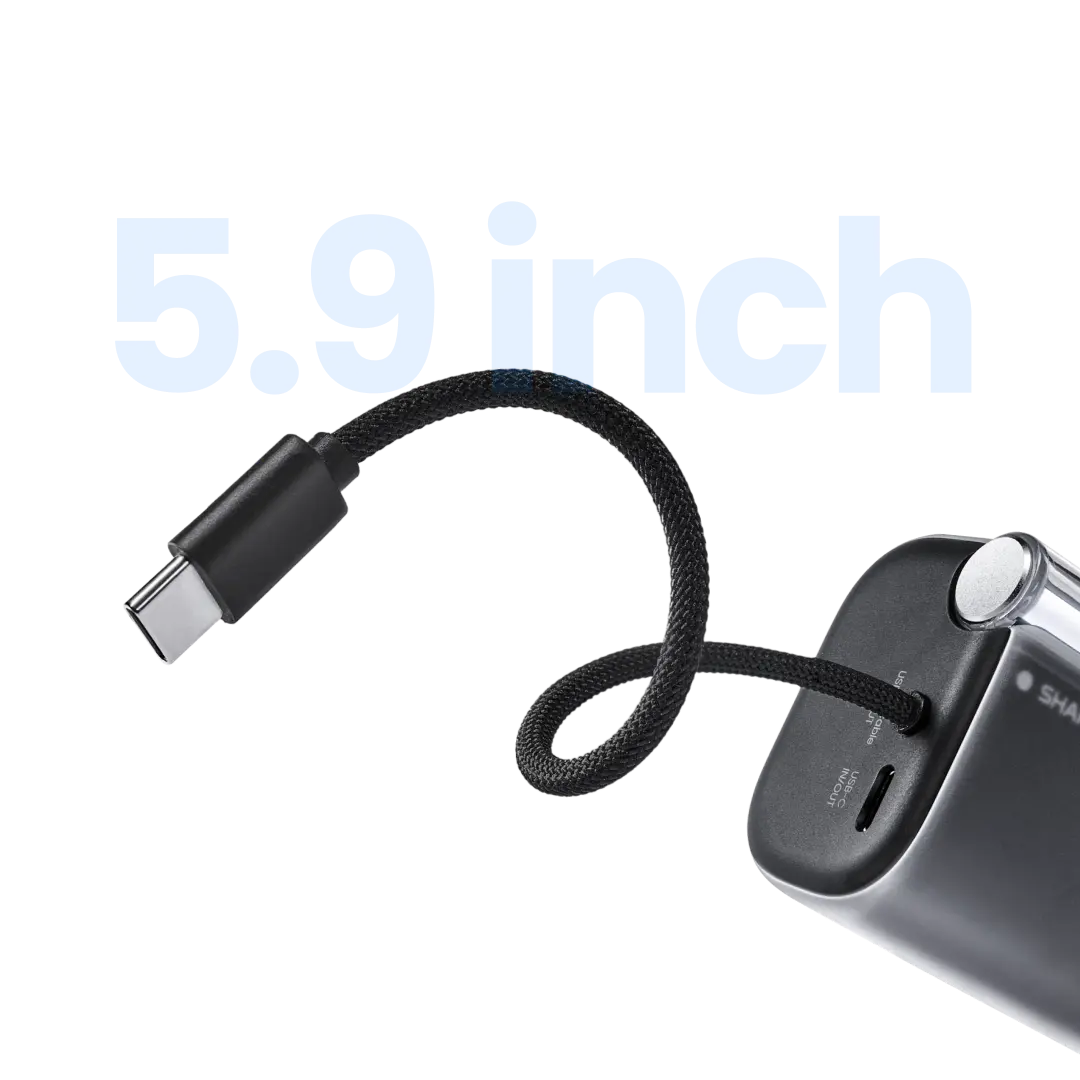 Features a 5.9""durable braided charging cable built right in.Grab it and charge—no extra cables required.
