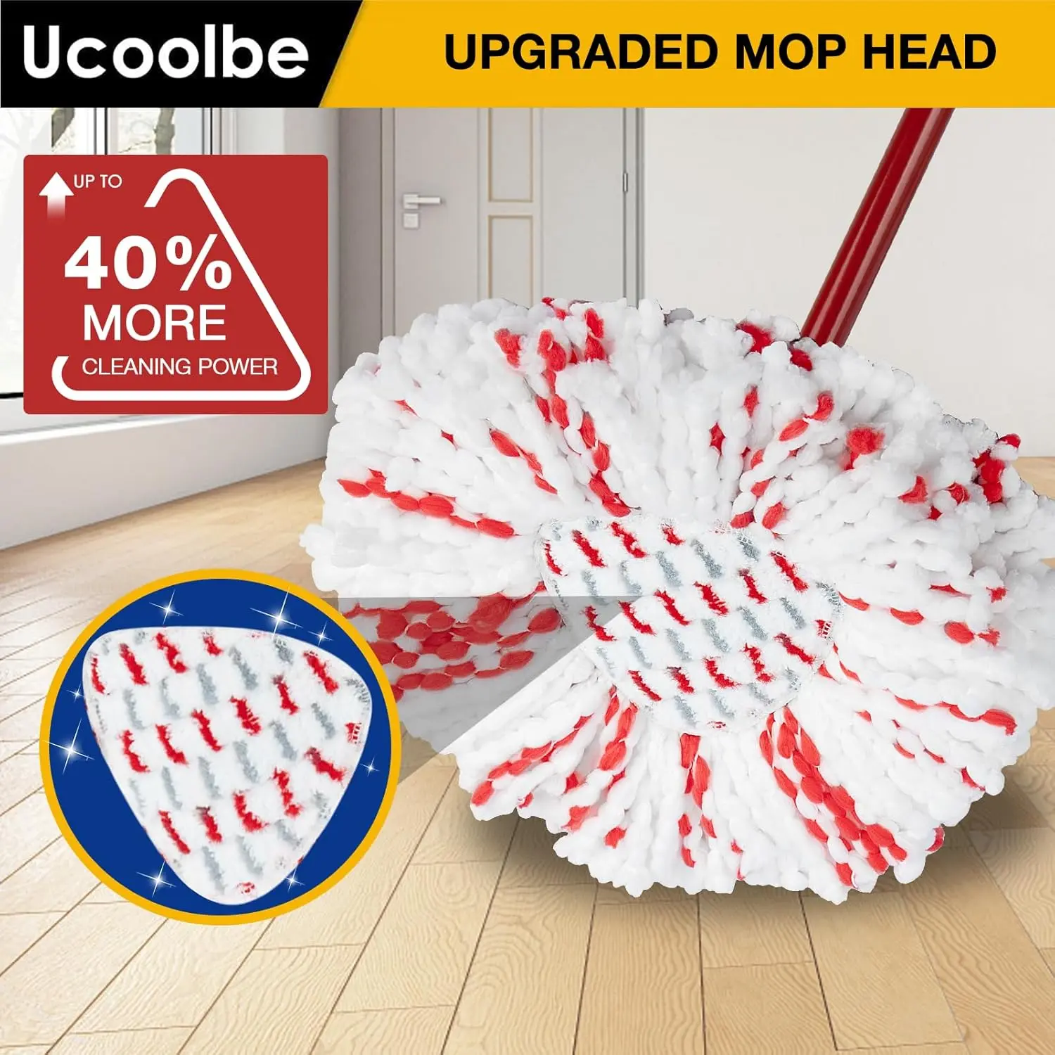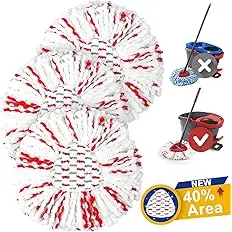 These upgraded spin mop heads are designed to fit the O Cedar EasyWring Spin Mop and Bucket System, providing 40% more cleaning area for efficient deep cleaning.