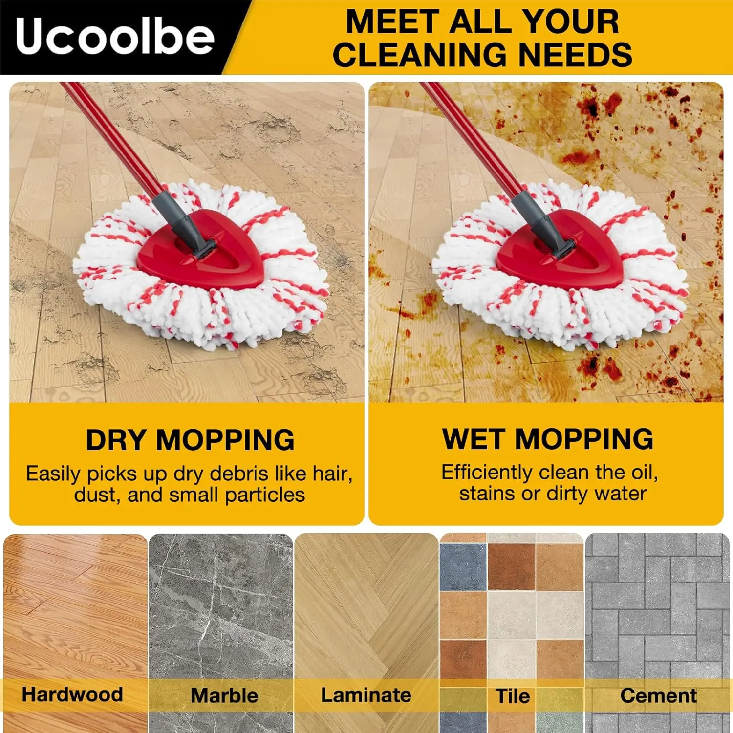 Ideal for use on a variety of hard floor surfaces including hardwood, marble, laminate, tile, cement, and other sealed floors without scratching or smearing.