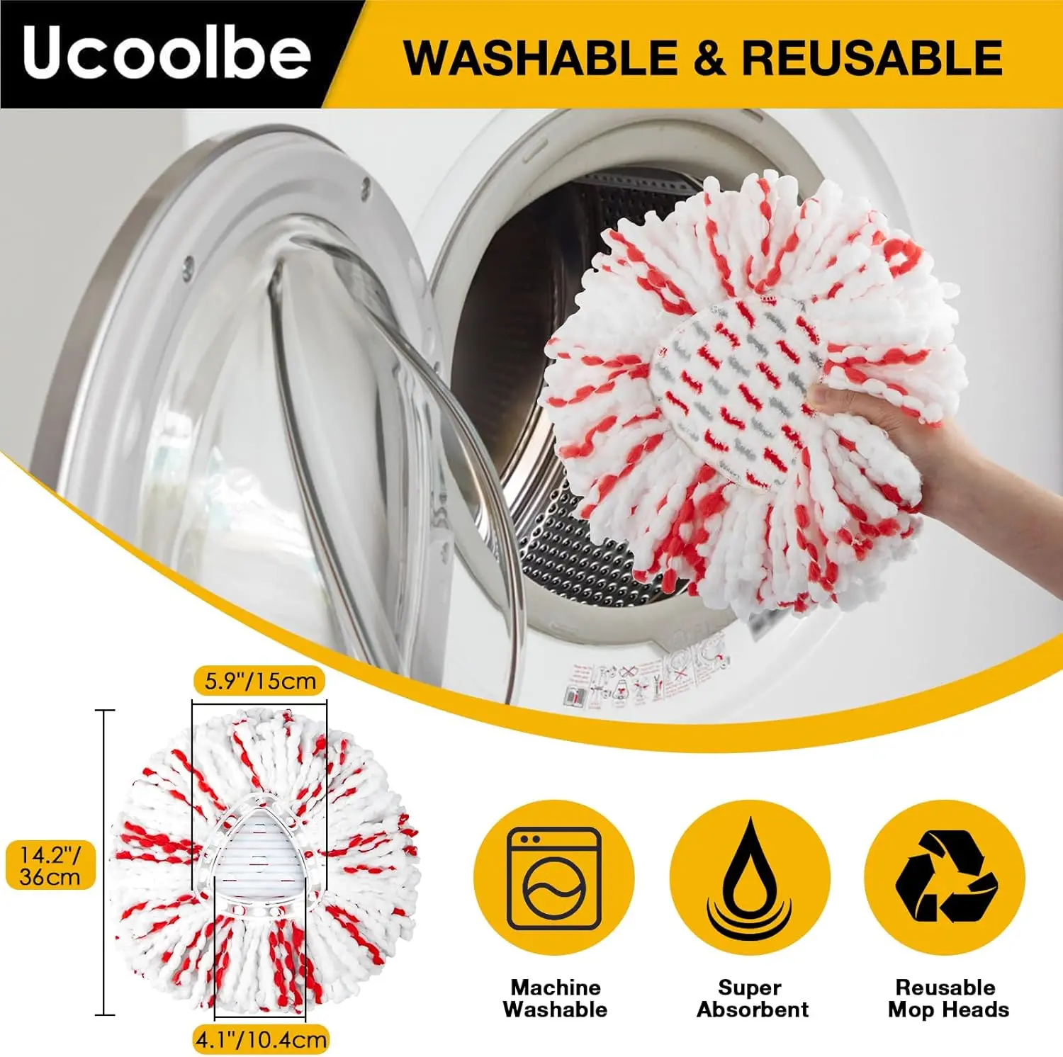 Made from 100% high-quality microfiber, these mop heads are machine washable and reusable, making them a practical choice for maintaining cleanliness.