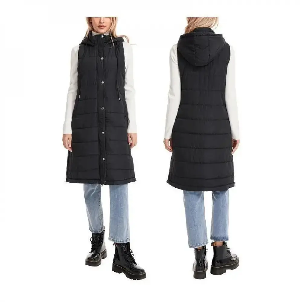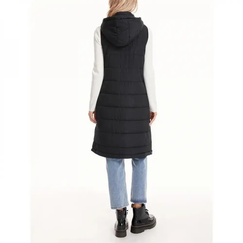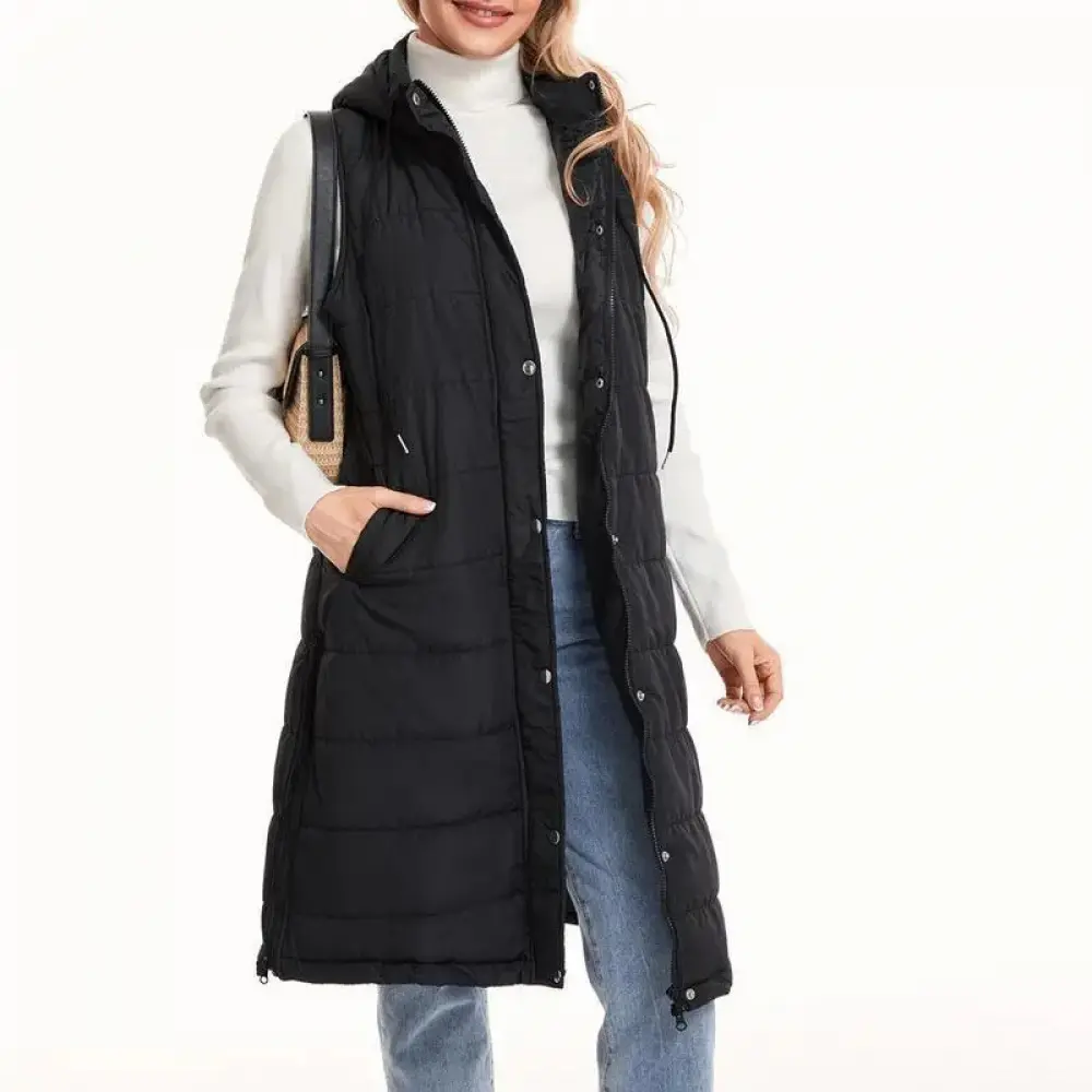 5. newarrivals Women Warm Keeping Long Gilet Solid Colour Sleeveless Zipper Puffer Jacket Hooded Waistcoat Midi Length Down Vest Thicken Quilted Coat Padded Outwear Streets