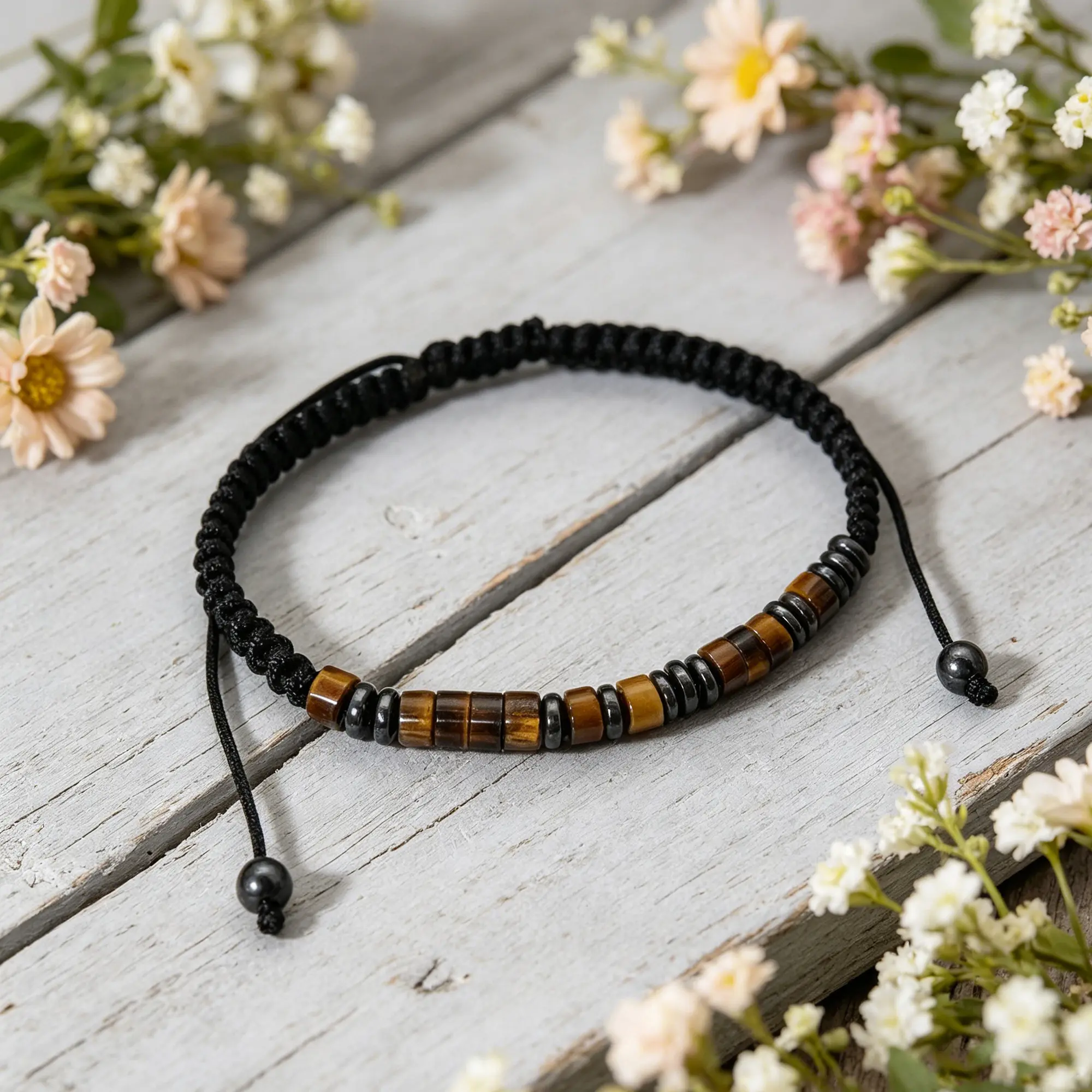 Made with powerful protection stones: Tiger's Eye for courage and luck, Hematite for grounding and calm. Triple protection against negative energy, anxiety, and stress.